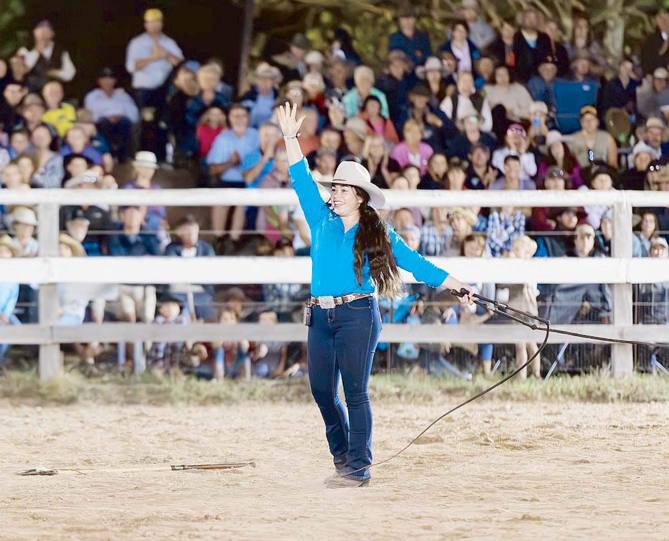Emiliqua, the current Australian Ladies Title holder with the Australian Whip-crackers and Plaiters Association, claimed back-toback national titles in 2024 and 2025 at Brisbane’s Ekka.