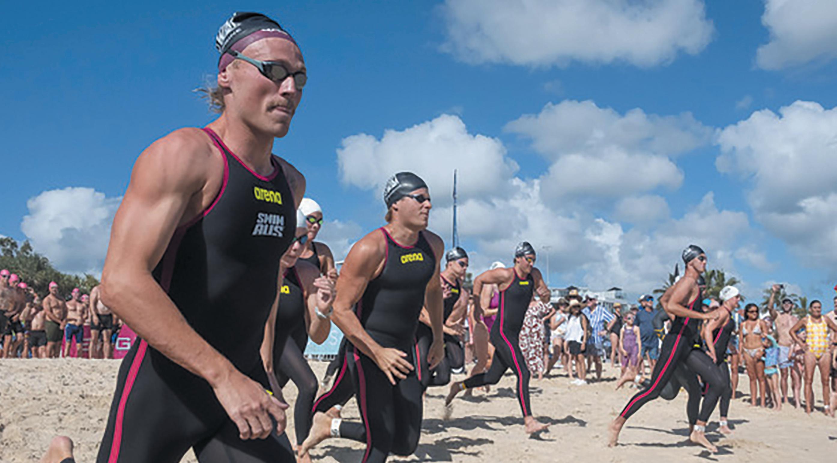 Thomas Raymond leads the elite group of swimmers in the 5km event. (Rob Maccoll)