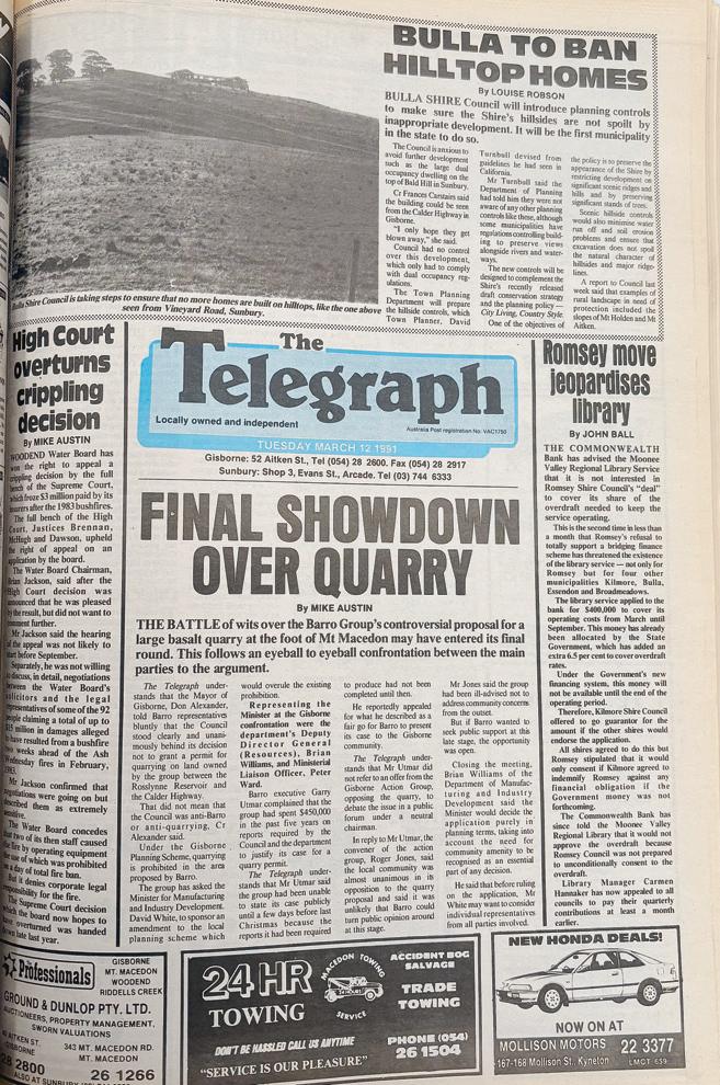 “The very small township of Clarkefield, consisting of only a couple of houses and a V/Line train station, would have a huge development hoist upon it,” he said.