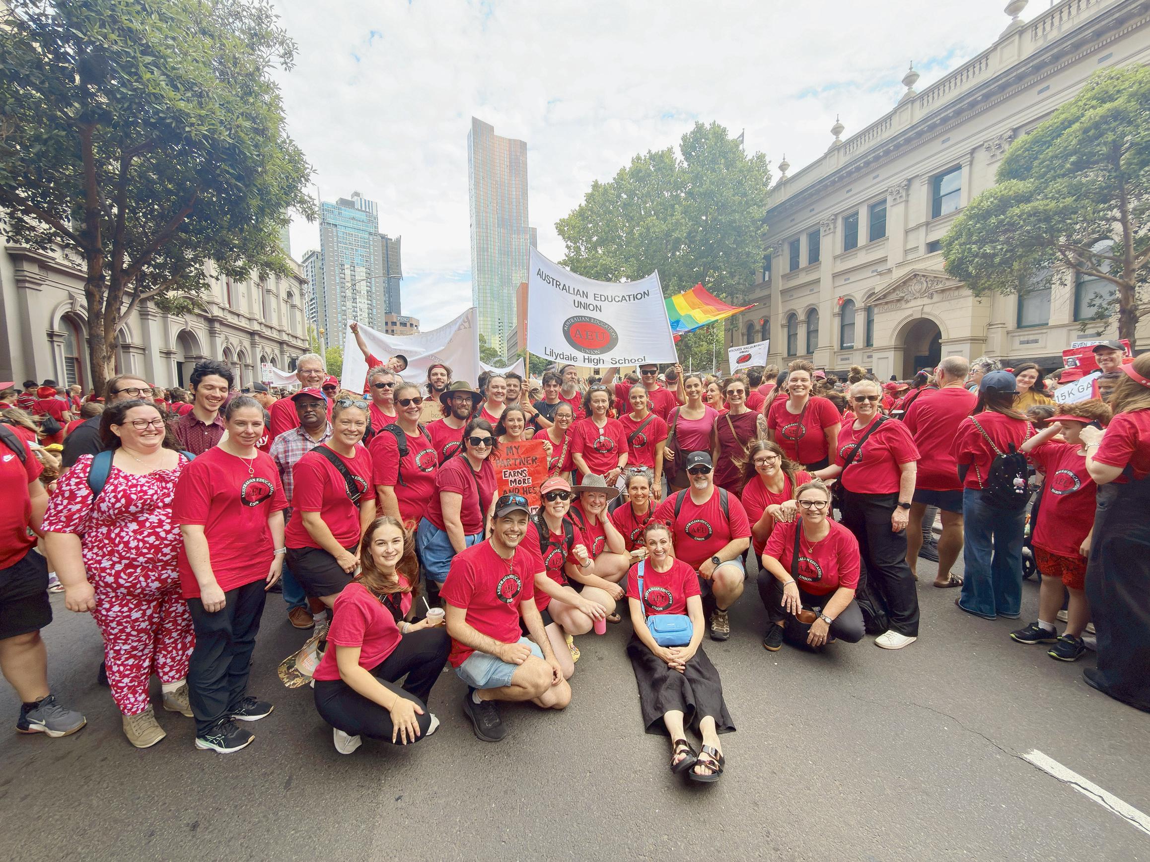 The strike and march through the city of Melbourne is Victoria’s first in more than 13 years and comes eight months out from the state election.