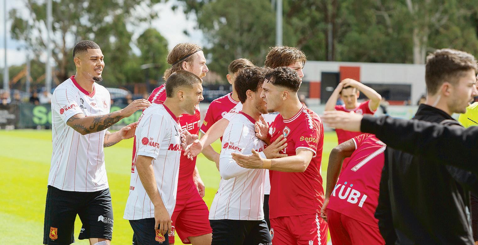 Three players, including the Phoenix’s Santiago Breton, were given red cards along withWestPrestoncoachAlexGymnopoulos in a three minute period at the end of the game.