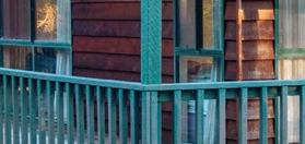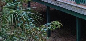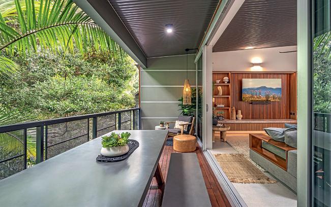 The bedrooms open onto a private rear deck nestled in the tree canopy.