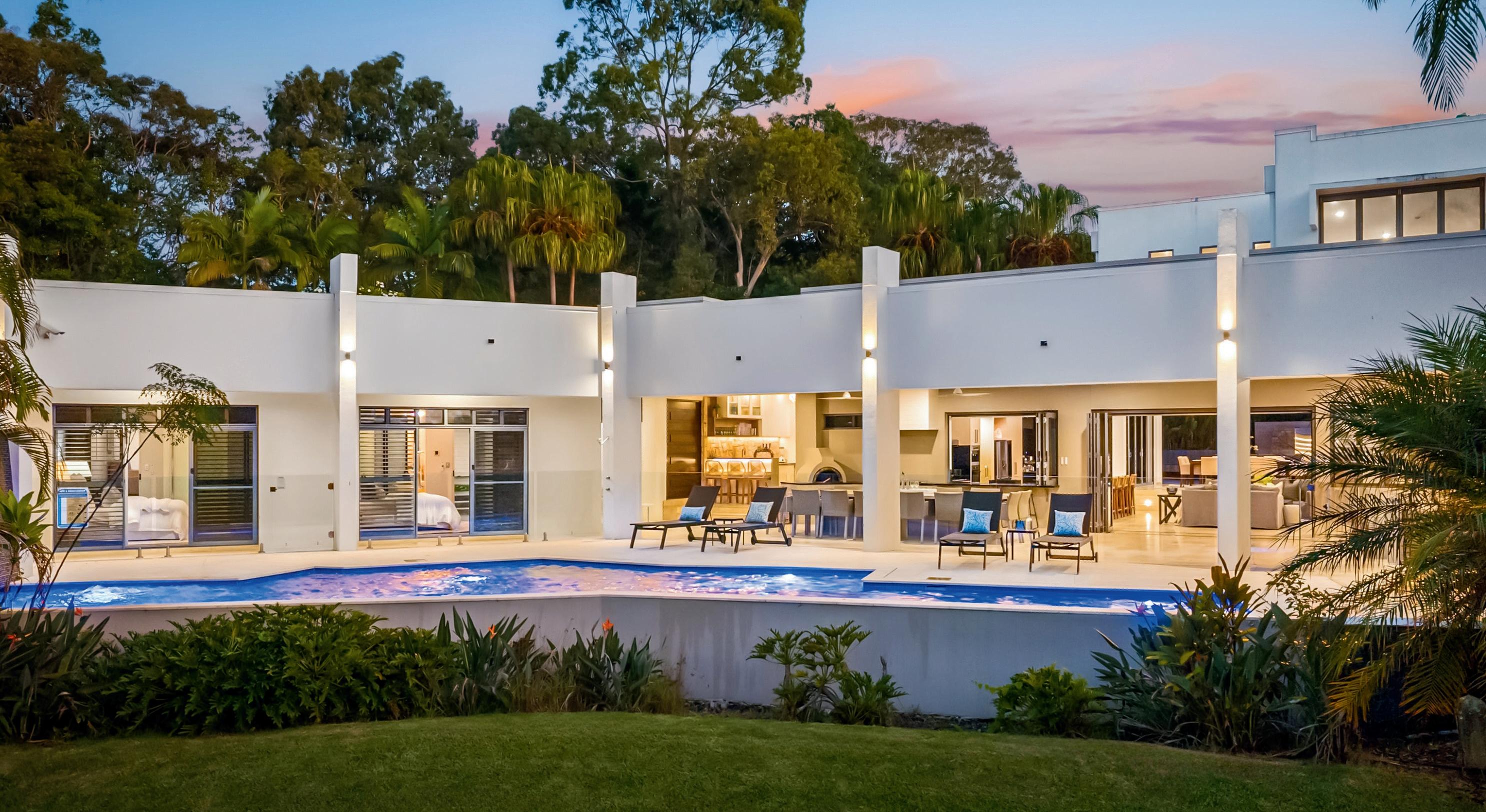 The property at 346 Lake Cooroibah Rd features a contemporary-design 600sq m house with pool.
