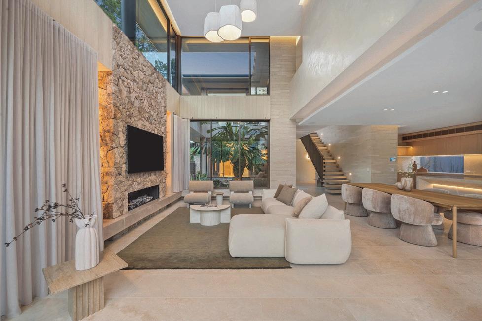 Beach.Admirethecurvaceousflutedwallsofthefoyer andhallway,theemphasisoncapaciousness,relentless commitmenttodesignsupremacy,howsunshine shadowdancesovertheItalianporcelaintiles,andlots ofentertainingoptionstoenjoywhateverthereasonor season-indoorsoroutwherenaturerulesasthelocal birdlifetrillchorusesofdelight.