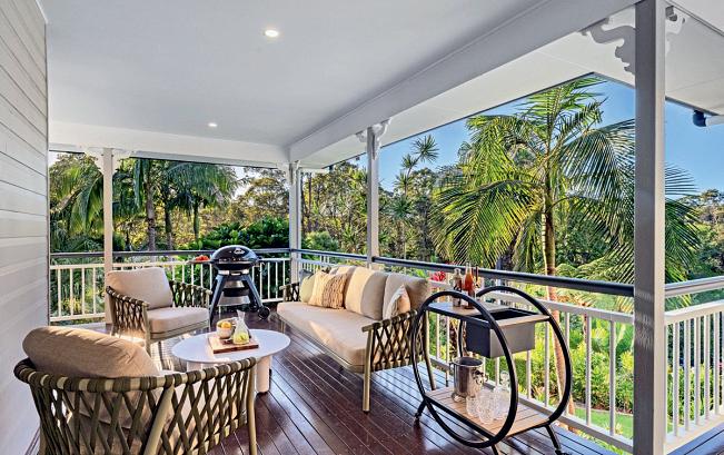 Framedbybushland,thisQueenslander-inspiredresidencedeliversalifestyle ofprivacy,charmandeffortlessindoor-outdoorliving.Wraparoundverandahs extendfromthefronttothesideandrear,offeringaselectionofsunlitandshaded spacestoenjoymorningcoffeeoreveningdrinksamidstalush,leafybackdrop.