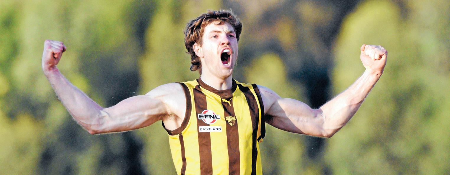 Lachlan Wynd was the leading goalkicker on the ground, booting three in Rowville’s 24-point seasonopening victory over South Belgrave. (Rob Carew: 351676)