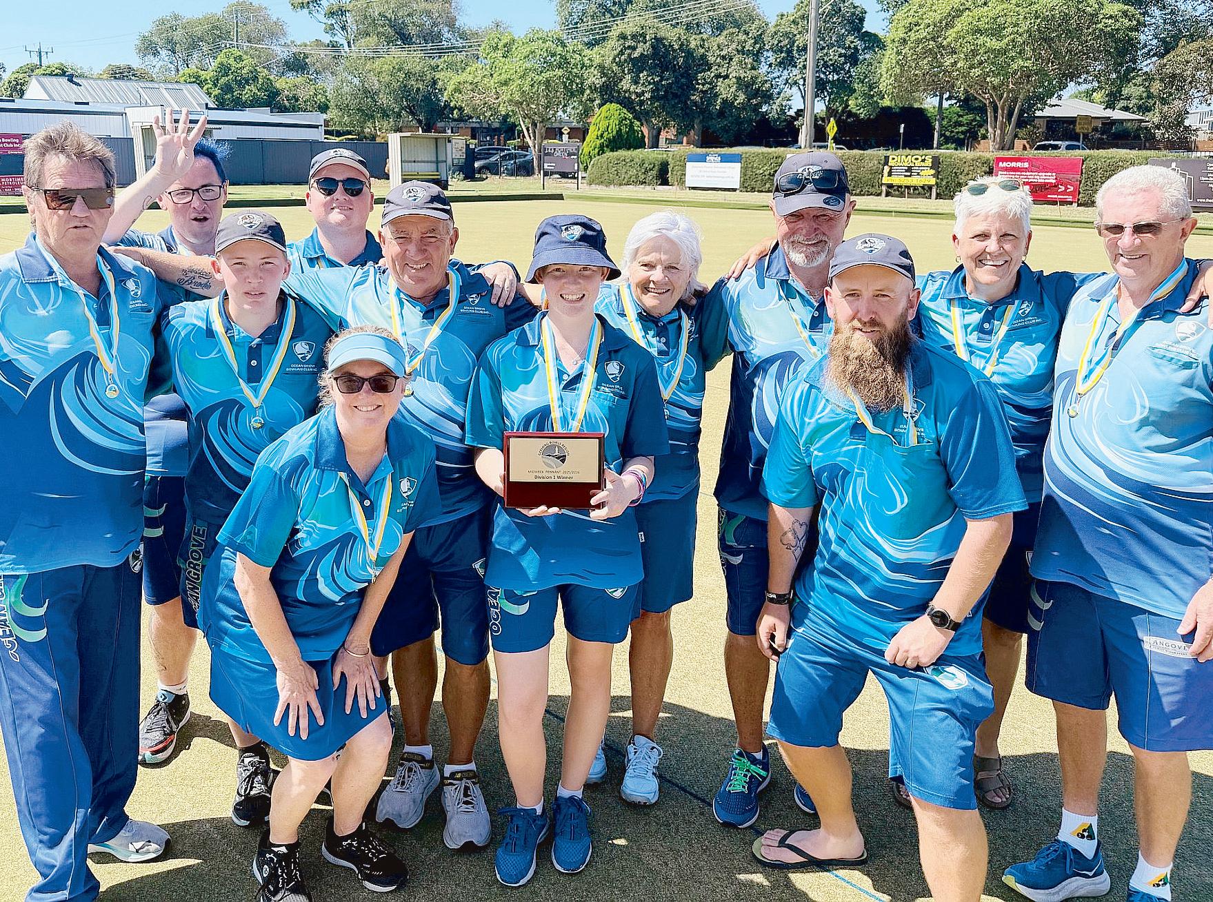 Division 1 - Ocean Grove 82 def City of Geelong 79: Alan Drury, Brian Boyle, Paul Entwhistle, Cheyne Verrier 25 def Nicholas Craven, Helen Boult, Kerry Gooley, Lionel Harvey 11; Michael West, Thomas Warren, Casper John, Jason Bertrand 18 def by John Shell, Neil Robinson, Sarah Ashby, Mathew Nitchie 36; Owen Clark, Mia O’Reilly, Terence Brady, Rod Brehaut 23 def Sandra Tillson, Ronald Sutherland, Stephen Somerton, David Vogele 12; Simon Avery, Dylan Ryan, Daniel Henery, Alan Callow 16 def by Jayden Wombell, Gavin Lane, Ned Trease-Gordon, David Wombell 20.