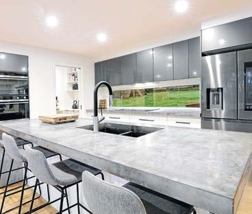 At the heart of the home lies a stunning contemporary kitchen that will delight any home chef. Featuring striking polished concrete waterfall benchtops with breakfast bar seating, quality appliances, an abundance of storage and a well-appointed butler’s pantry, it is both functional and visually impressive. The kitchen flows seamlessly into the expansive open plan living and dining zone, complemented by an additional flexible space ideal as a children’s play area, reading nook or informal lounge.