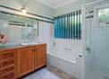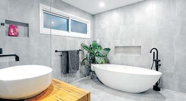 master suite is positioned at one end of the home and features an oversized walk-in robe along with a luxurious ensuite complete with floor-to-ceiling tiles, excellent storage and a sophisticated, hotel-inspired finish. The remaining bedrooms all include built-in robes and are serviced by a beautifully designed family bathroom showcasing a floating timber vanity and oversized bathtub.