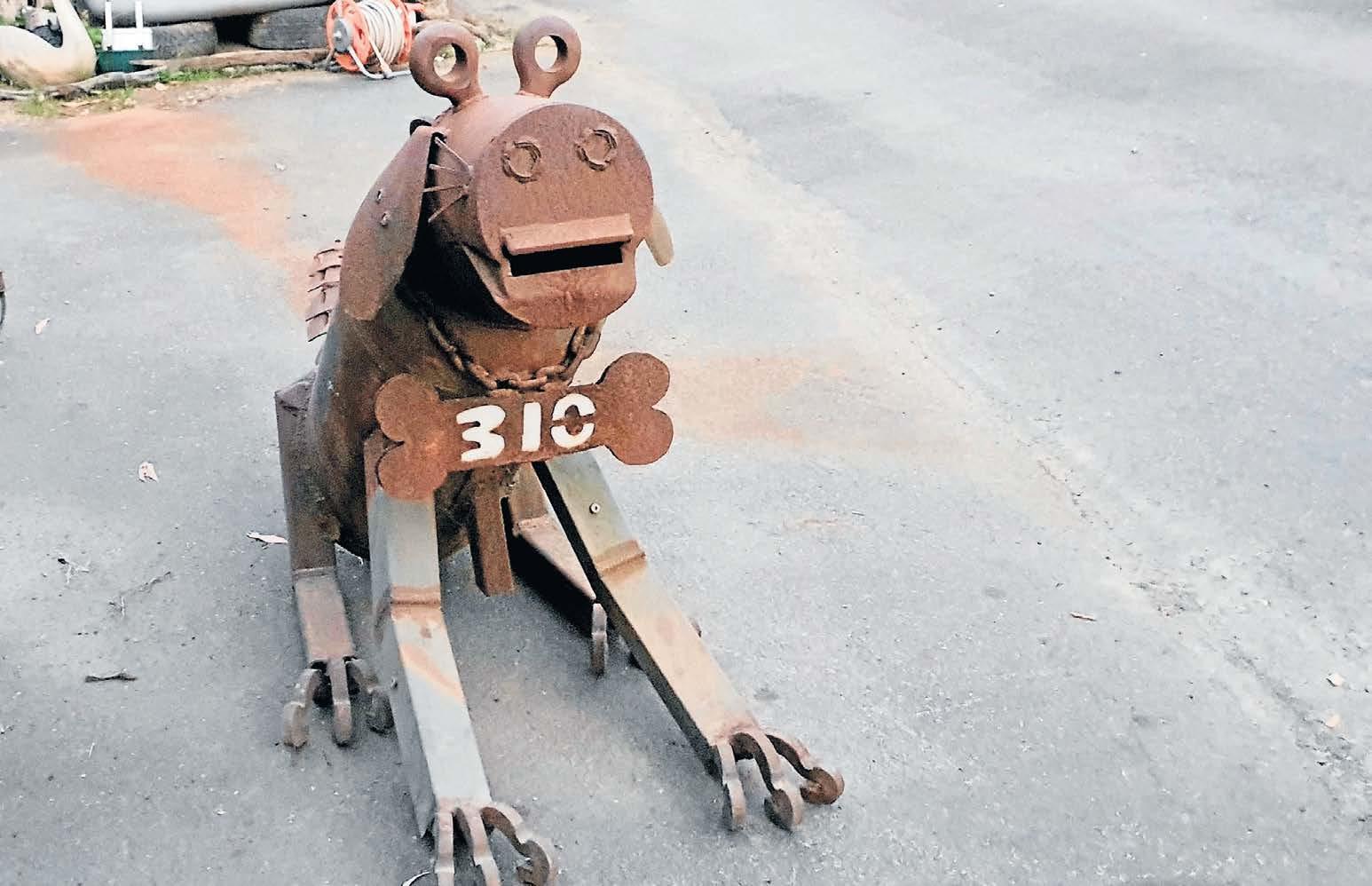 Commissioned by his wife as a birthday gift, the $2000 letterbox represented the many canines at the property and was crafted with an old gas bottle and other various bits of metal.