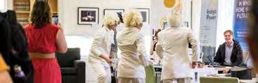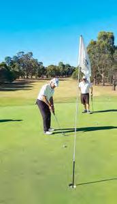 ter. Sunscreen and hats were just as essential to survival as straight drives and putts. Drinks were guzzled during the round but even more at the finish. The tight quarters in the room made it easy for conversation but a little difficult for serving lunch. Elbows flew and cutlery rattled as hungry golfers gobbled the schnitzel and chips and downed a beer.