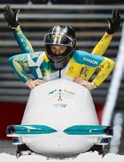 Australia’s Bree Walker and Kiara Reddingius arrive at the finish during a two women bobsled run.(AP Photo/Aijaz Rahi)