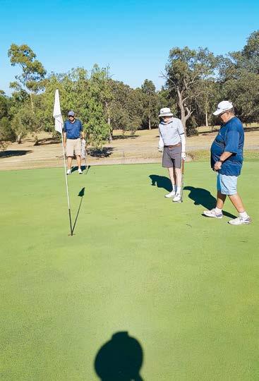 Ross Wilson, Ian Staggard and Trevor Barr wait for Brett Chambers to putt. (Supplied)