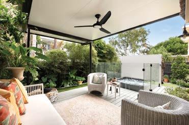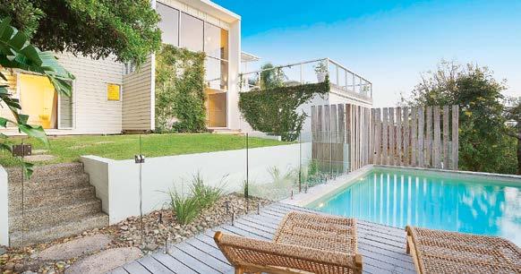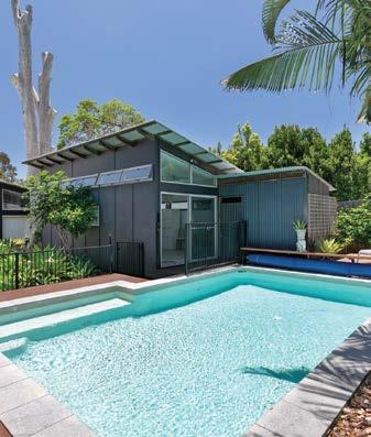 shimmering elongated leisure pool, enveloped by stunning terrazzo style concrete. There’s a cool window servery with bar/cafe vibes and a shady pool pavilion, a favoured nook for a good book, while the nearby bathroom and laundry are thoughtfully located.