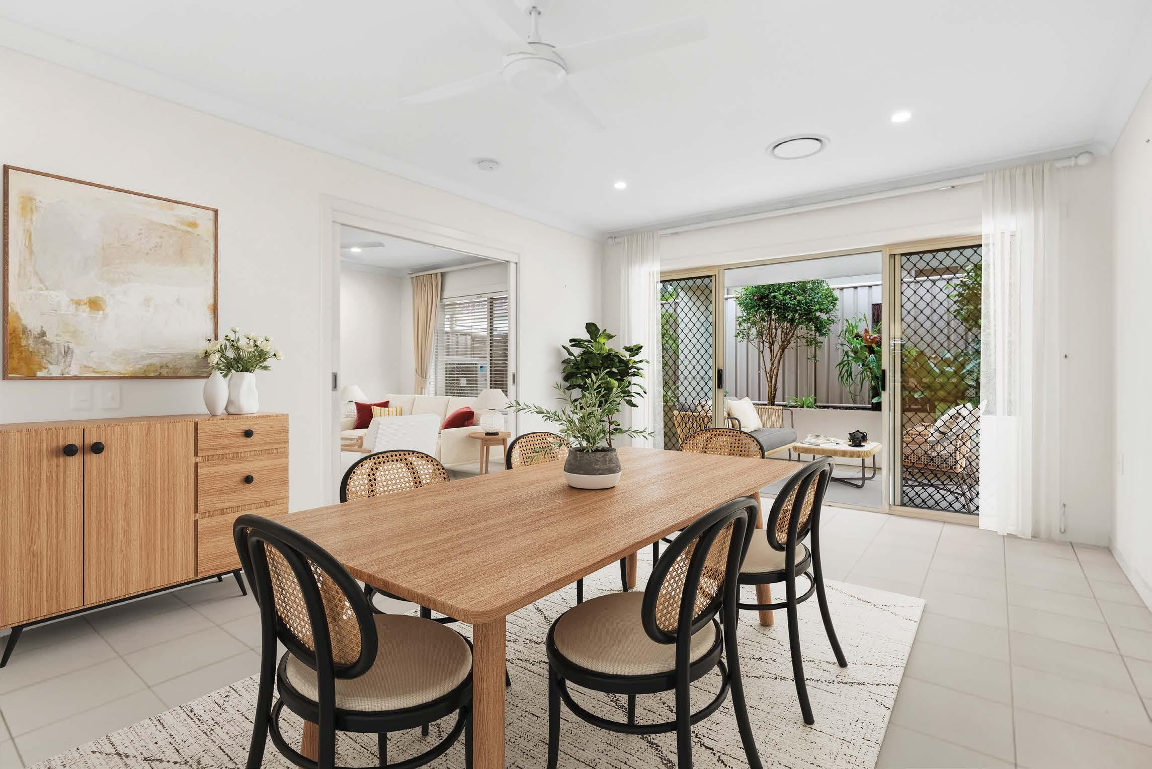 • Open, light-filled living areas with cool tiled floors and carpet in the bedrooms
