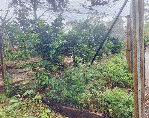 The grounds feature established eureka lemon, meyer lemon, and mandarin trees, along with a herb garden, offering fresh produce right at home.