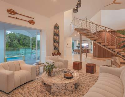 Ditchfield,embracesandadvancestheidyllicsubtropical vernacularas wellaslivinglavidaluxe Lookbeyondthegallery-stylehallway.Expansivespaces albeitentertainingnirvanahasdisappearingdoors on twosides.Oneopens to theundercovermain terrace with‘secret’steps to therooftop terraceandeagle-eye elevatedviews;in-betweenis awide wallofglassalso capturingthespectacularsight.