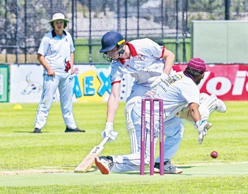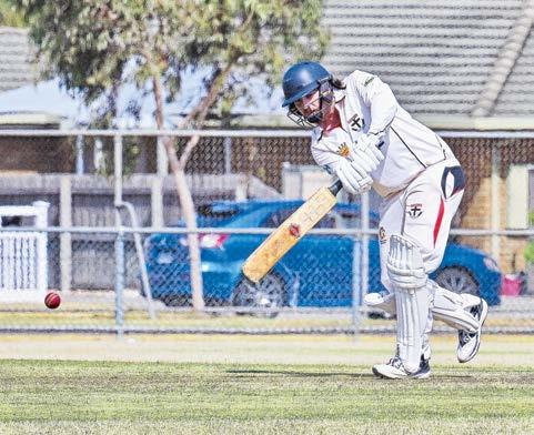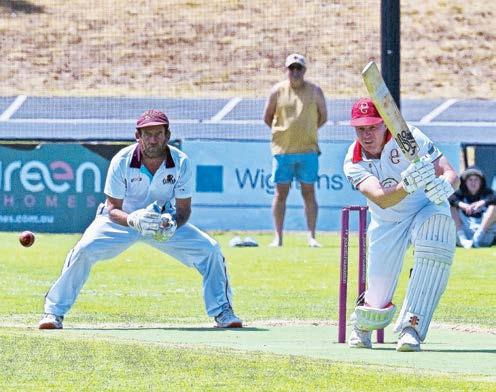 Jong (13 not out) and Harrisyn Wingrave (12 not out) to resume after being 2/12. A win will probably see the Snakes in the four by the end of the round on Saturday. WALLINGTON can sew up second spot on the ladder if it can make another 105 runs with nine wickets in hand against St Leonards. Nick Hallam (44) was the only batter to look like getting a big score before being run out as the Saints crumbled to 122 all out. Dane Wise-Graham moved up to 28 wickets for the season with 3/42 while Colin Smith (2/29 from 19 overs) and the consistent Mitch Sleeman (2/22 from 12) applied the brakes. In reply, the Wallabies are 1/18, still with a bit of work to do.
