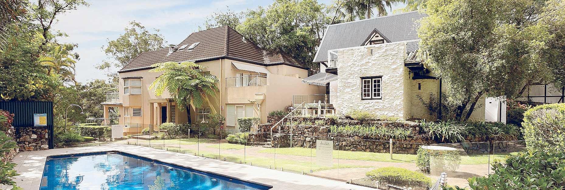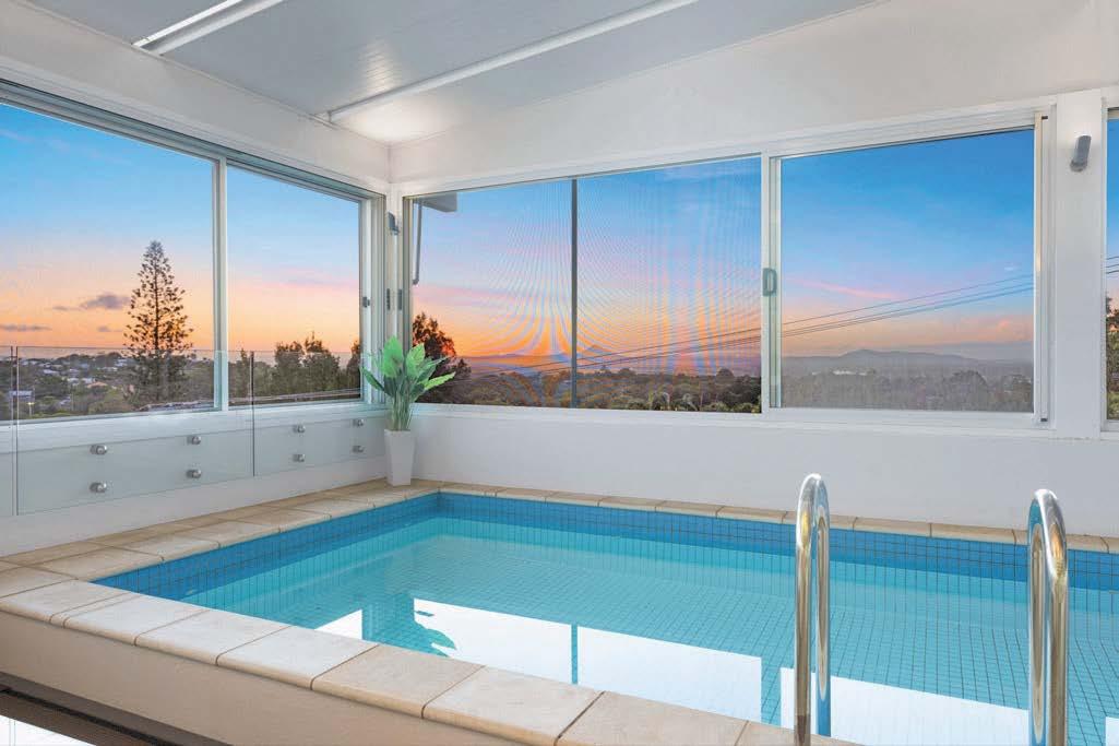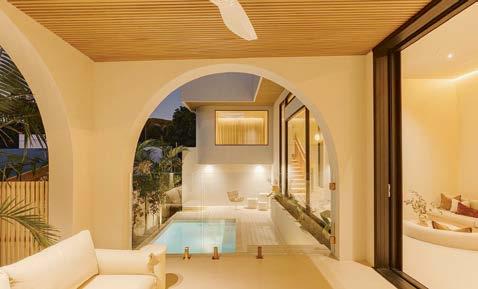 shimmering elongated leisure pool, enveloped by stunning terrazzo style concrete. There’s a cool window servery with bar/cafe vibes and a shady pool pavilion, a favoured nook for a good book, while the nearby bathroom and laundry are thoughtfully located.
