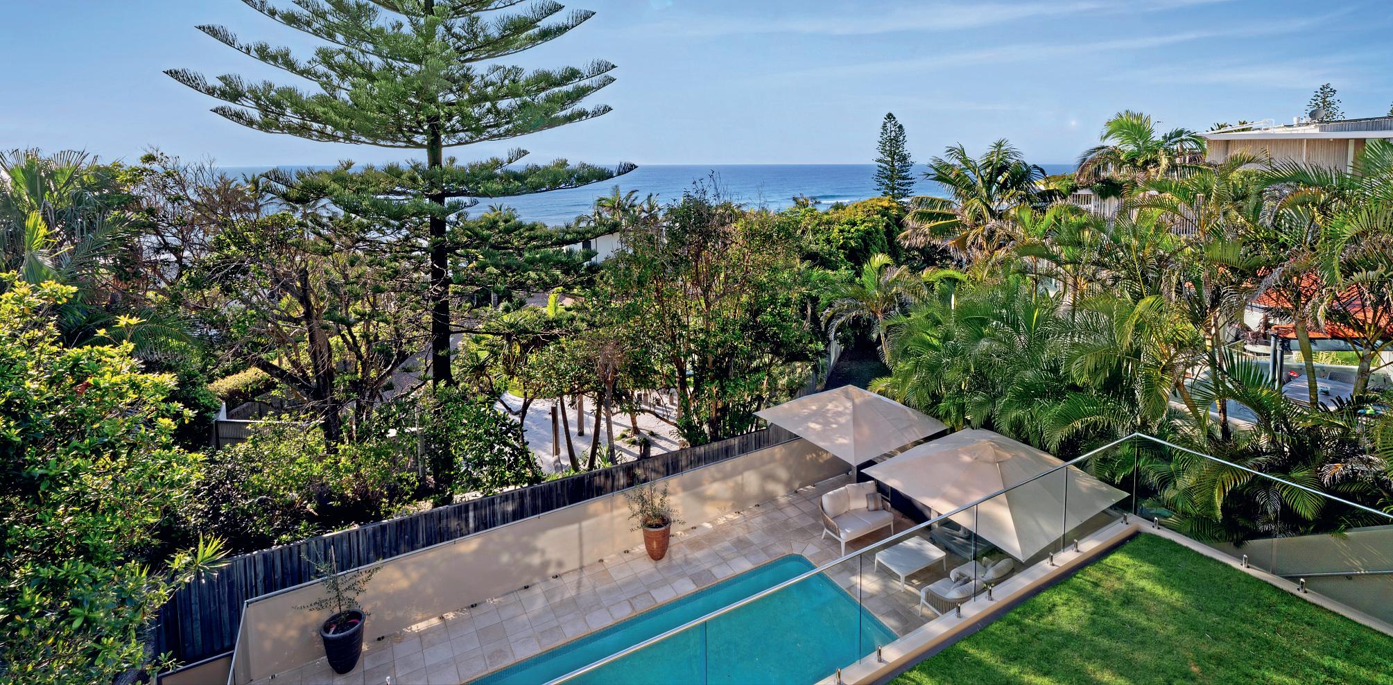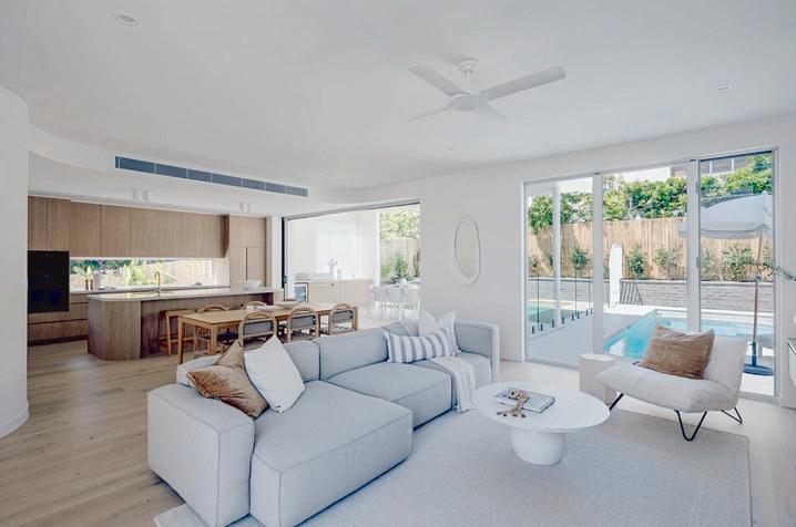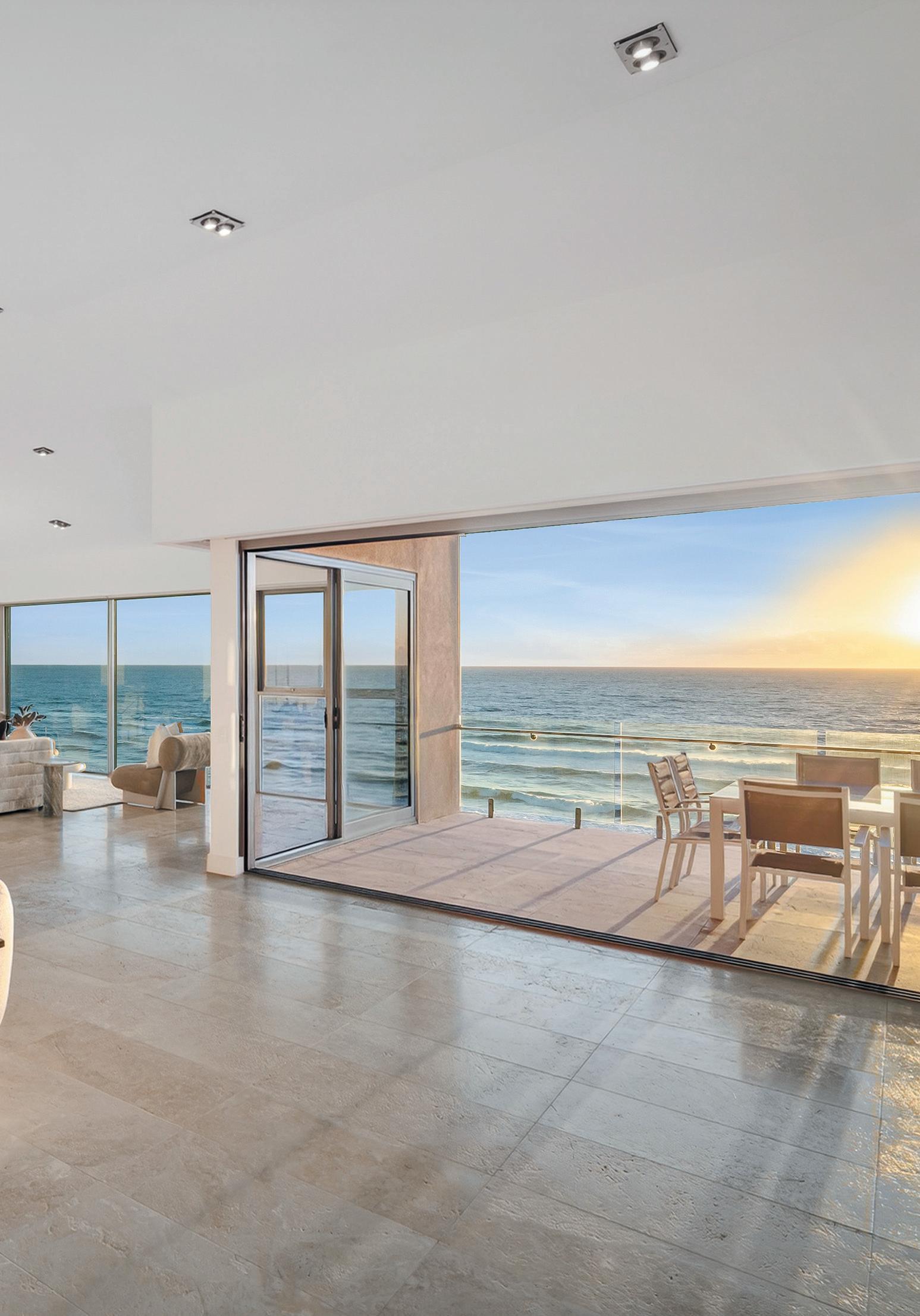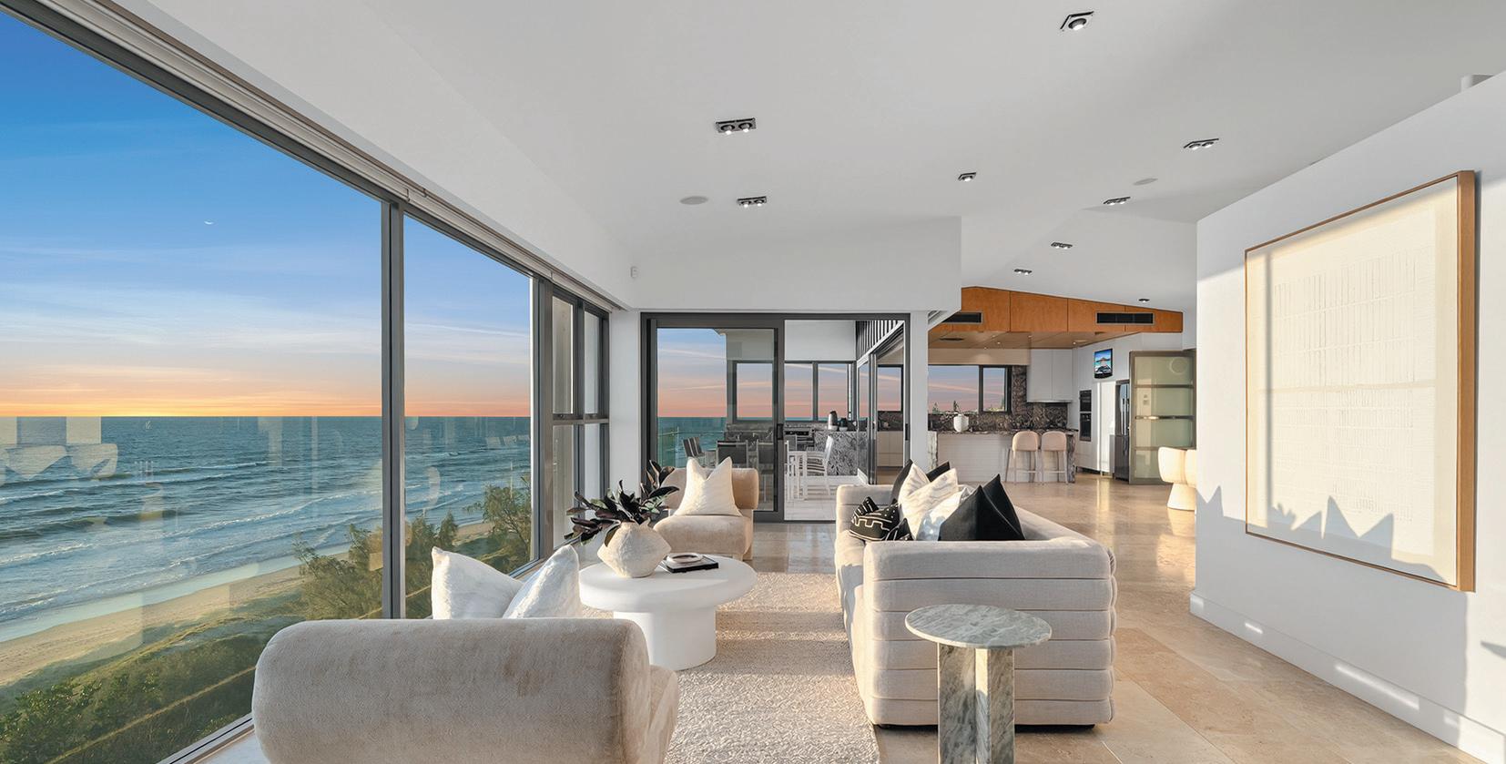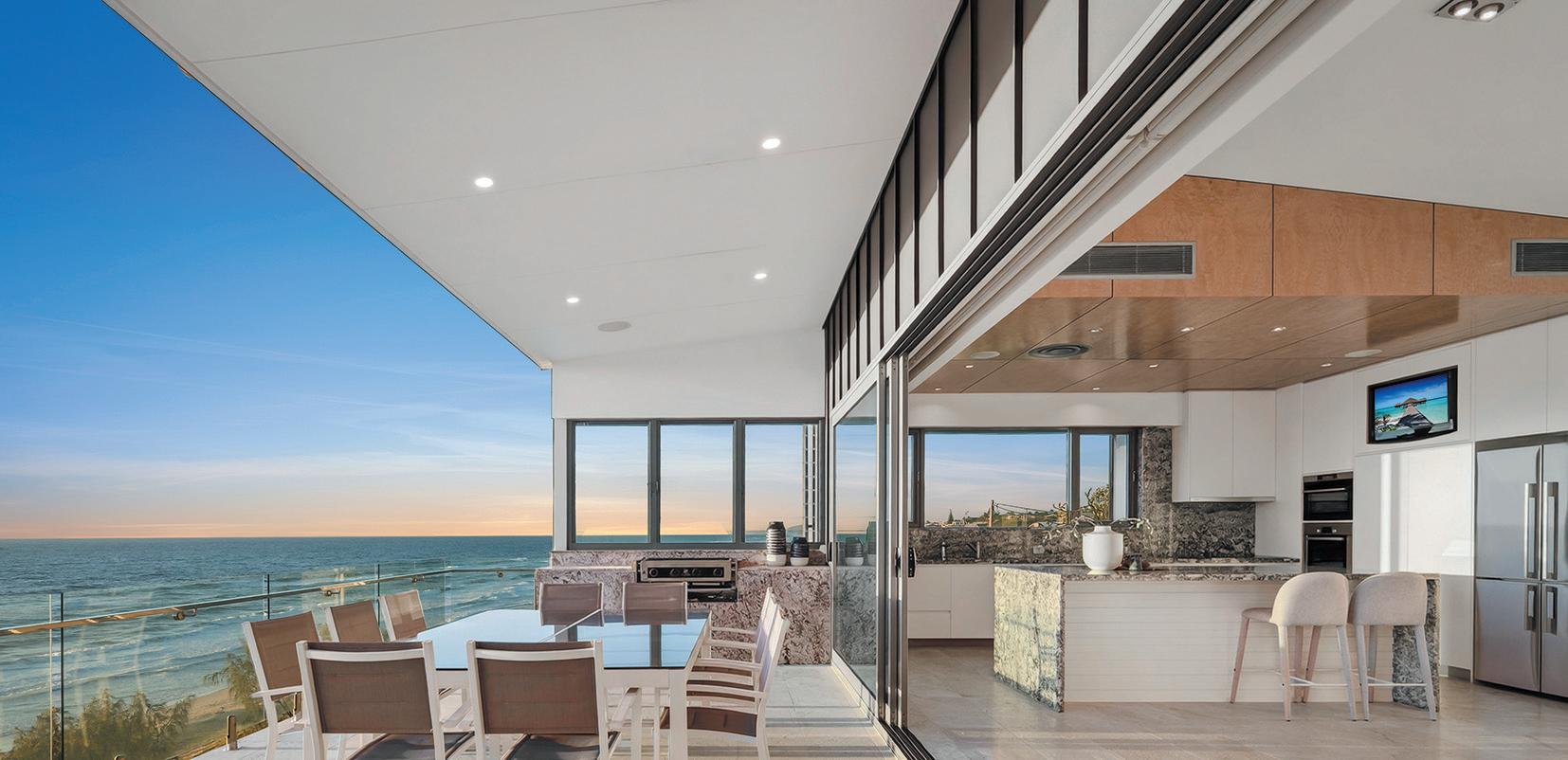 BeachvillageandtheSurfClub.Expansiveglazing oodstheinteriorswithlight,whileopen-planliving owstoaterraceandresort-stylepoolbelow.The kitchenisasculpturalcentrepieceforentertaining,with oceanvistasfromeveryangle.