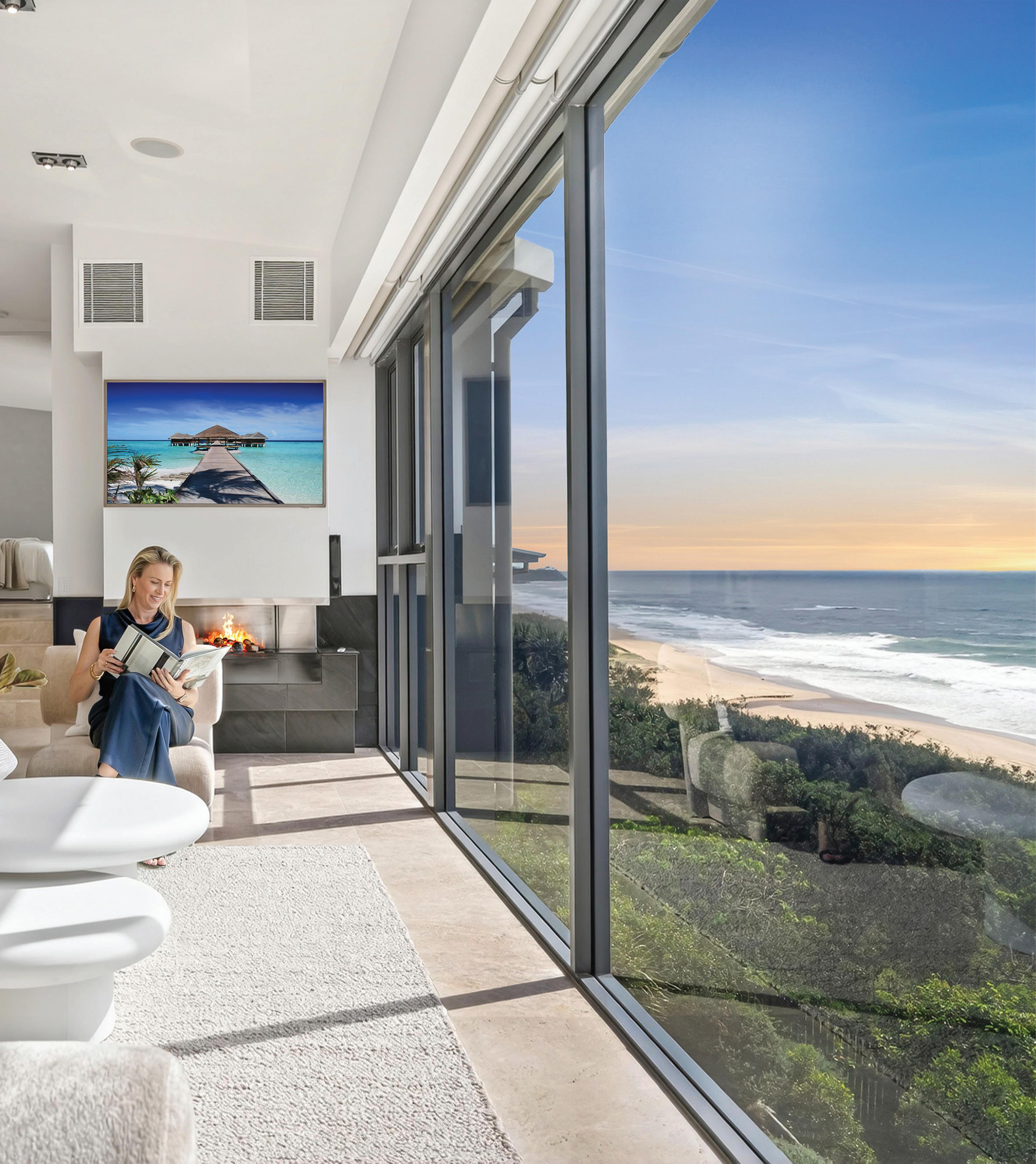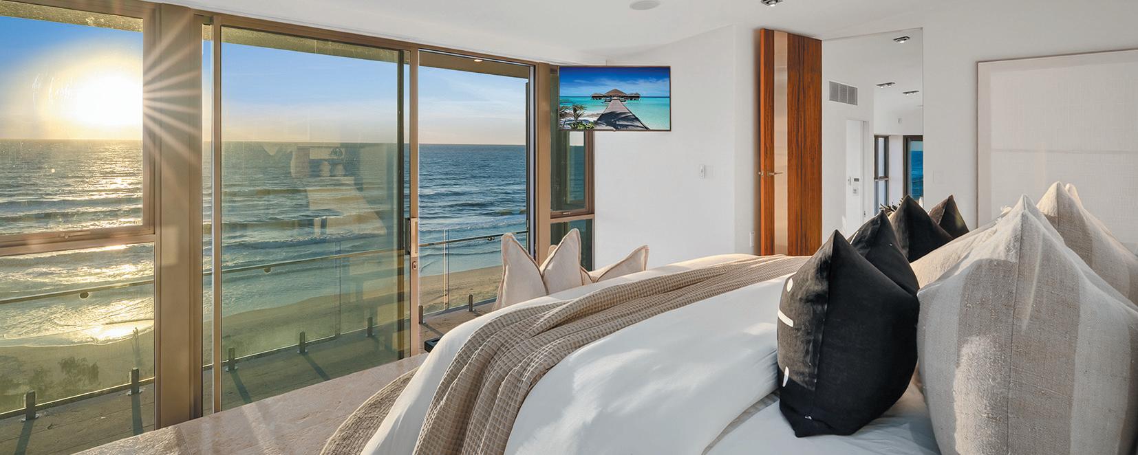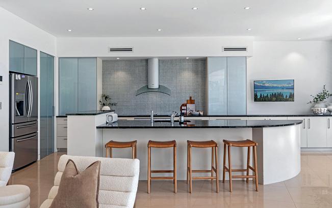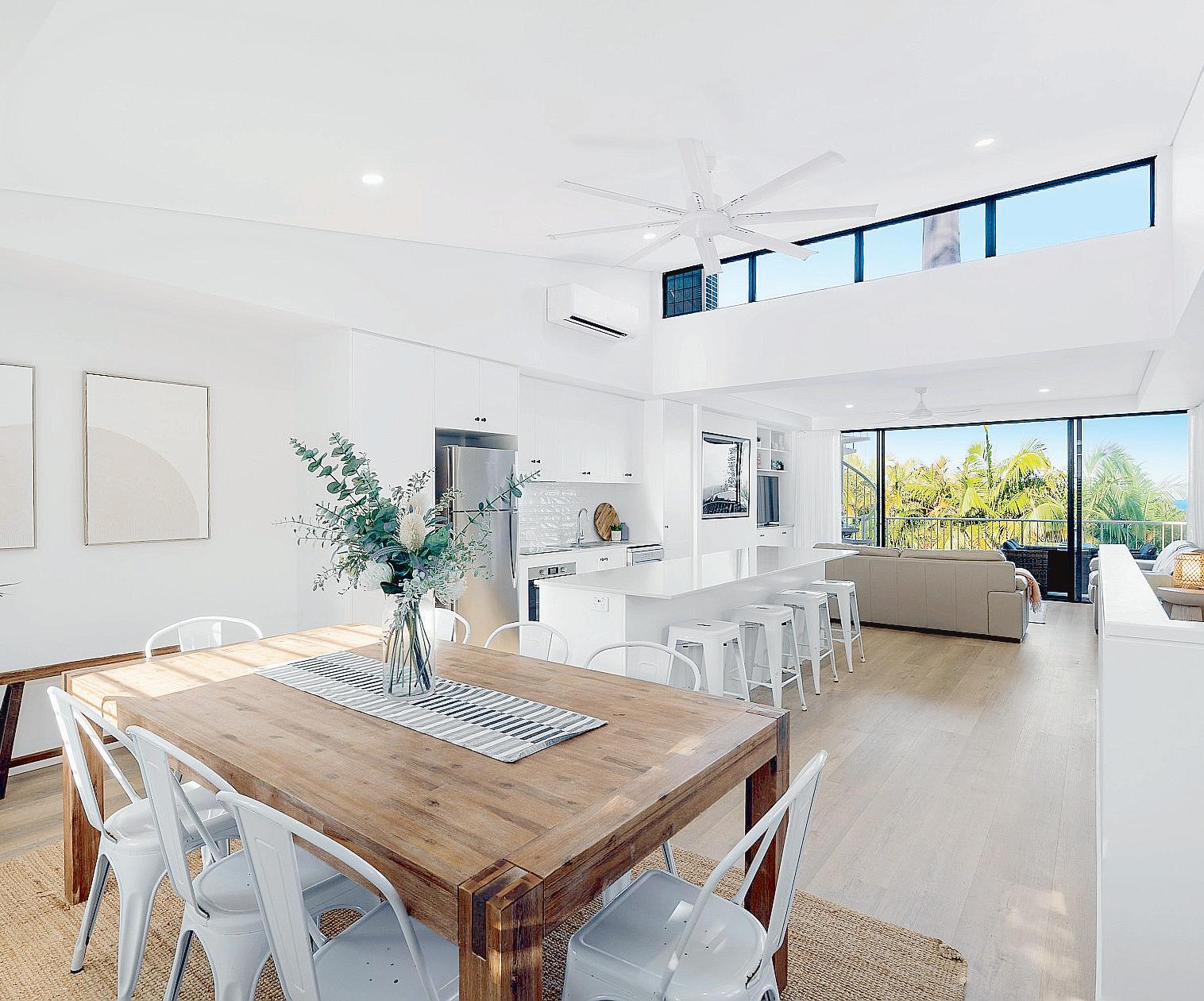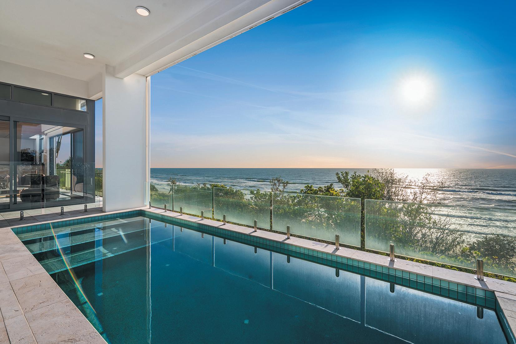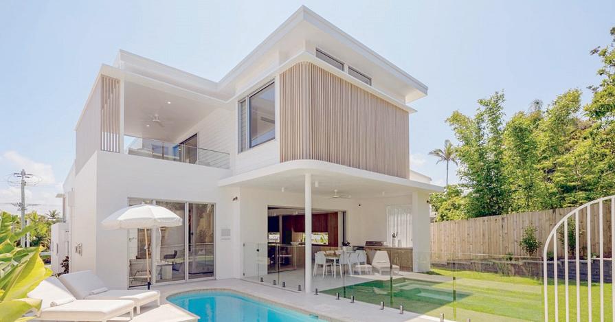 BeachvillageandtheSurfClub.Expansiveglazing oodstheinteriorswithlight,whileopen-planliving owstoaterraceandresort-stylepoolbelow.The kitchenisasculpturalcentrepieceforentertaining,with oceanvistasfromeveryangle.