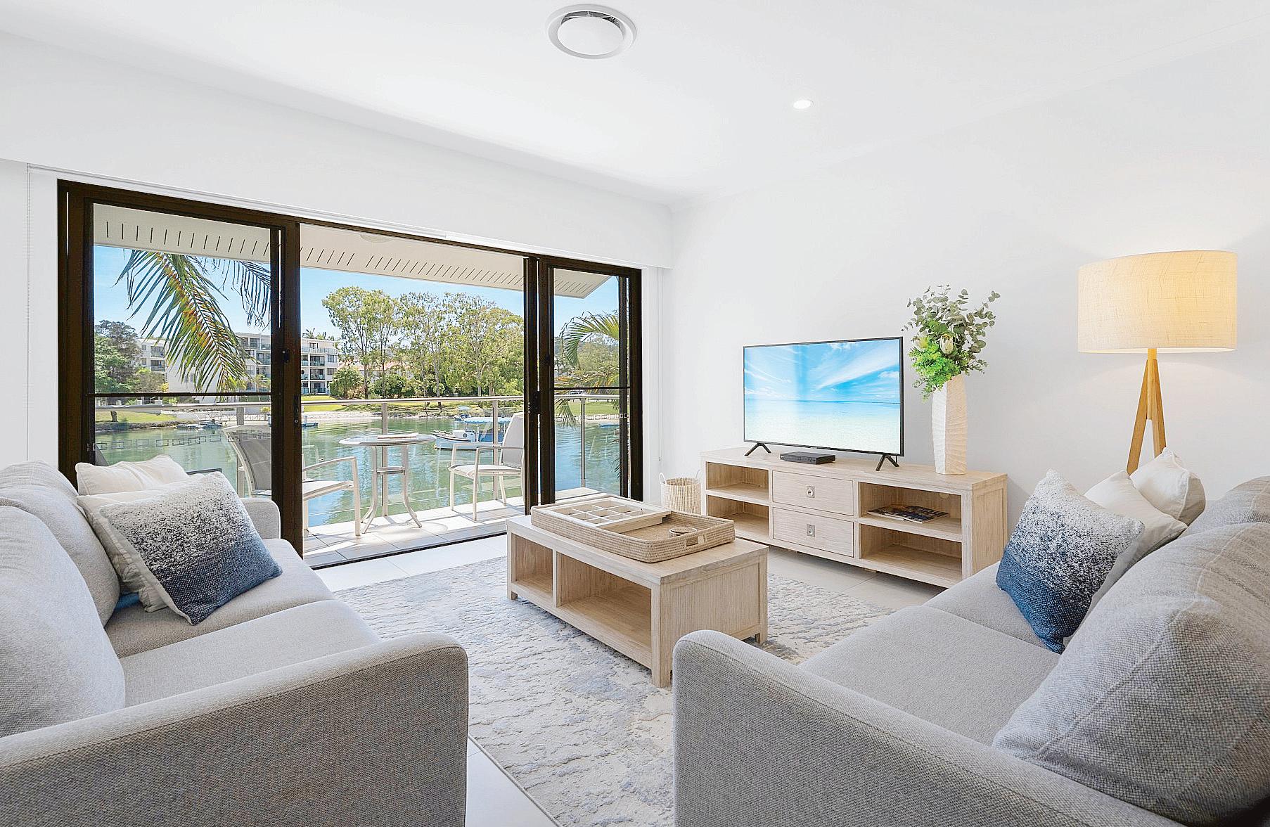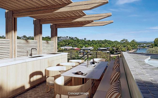 Coming up is a three-bedroom, threebathroom penthouse apartment with river views at Noosa Heads.