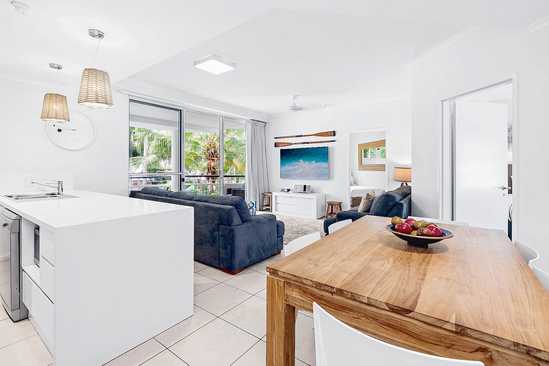 Overlooking the lagoon and the waterways leading to Noosa River, the apartment enjoys a peaceful location.