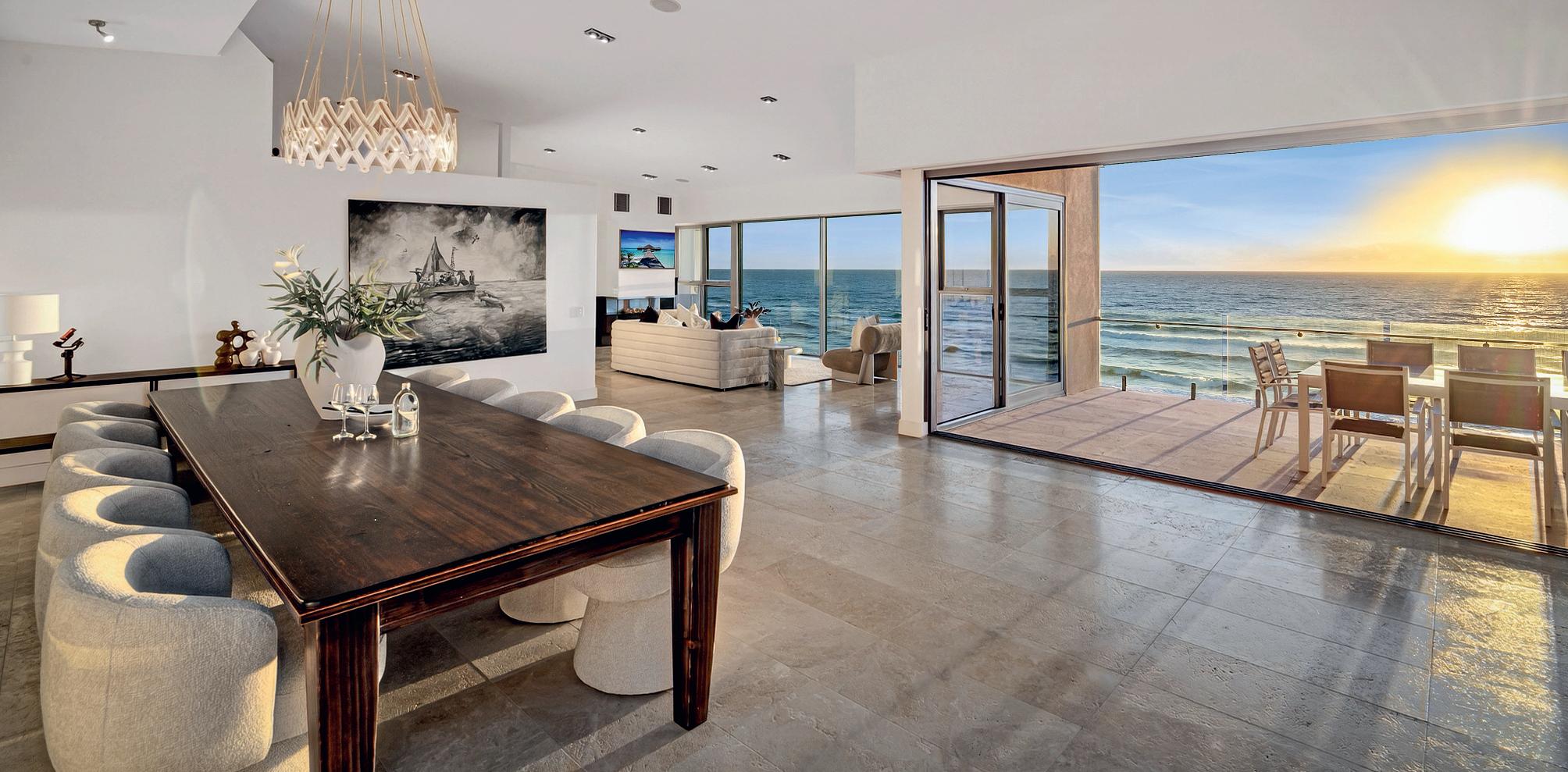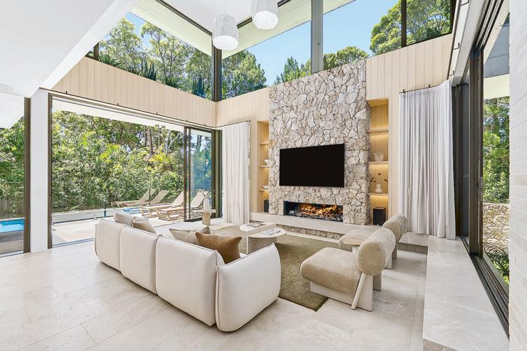 anearlymorningswim.It’svivacious,e ortlesslycool yetquintessentiallymid-centurymodernastomorrow. Voluminousdoubleheightspaces,wallsofmassive panesanddisappearingdoors,endlesstravertine, allformingtheheartoftheresidenceandmimicked alfresco.Enoughtomakeyousigh!