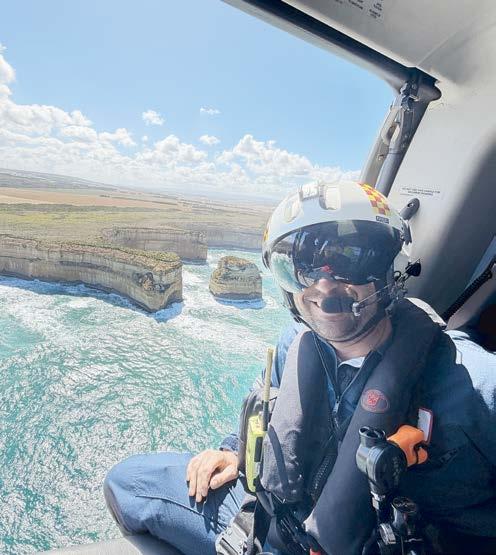 Williamstown’s Kane Treloar aboard Life Saving Victoria’s rescue helicopter. (Supplied)