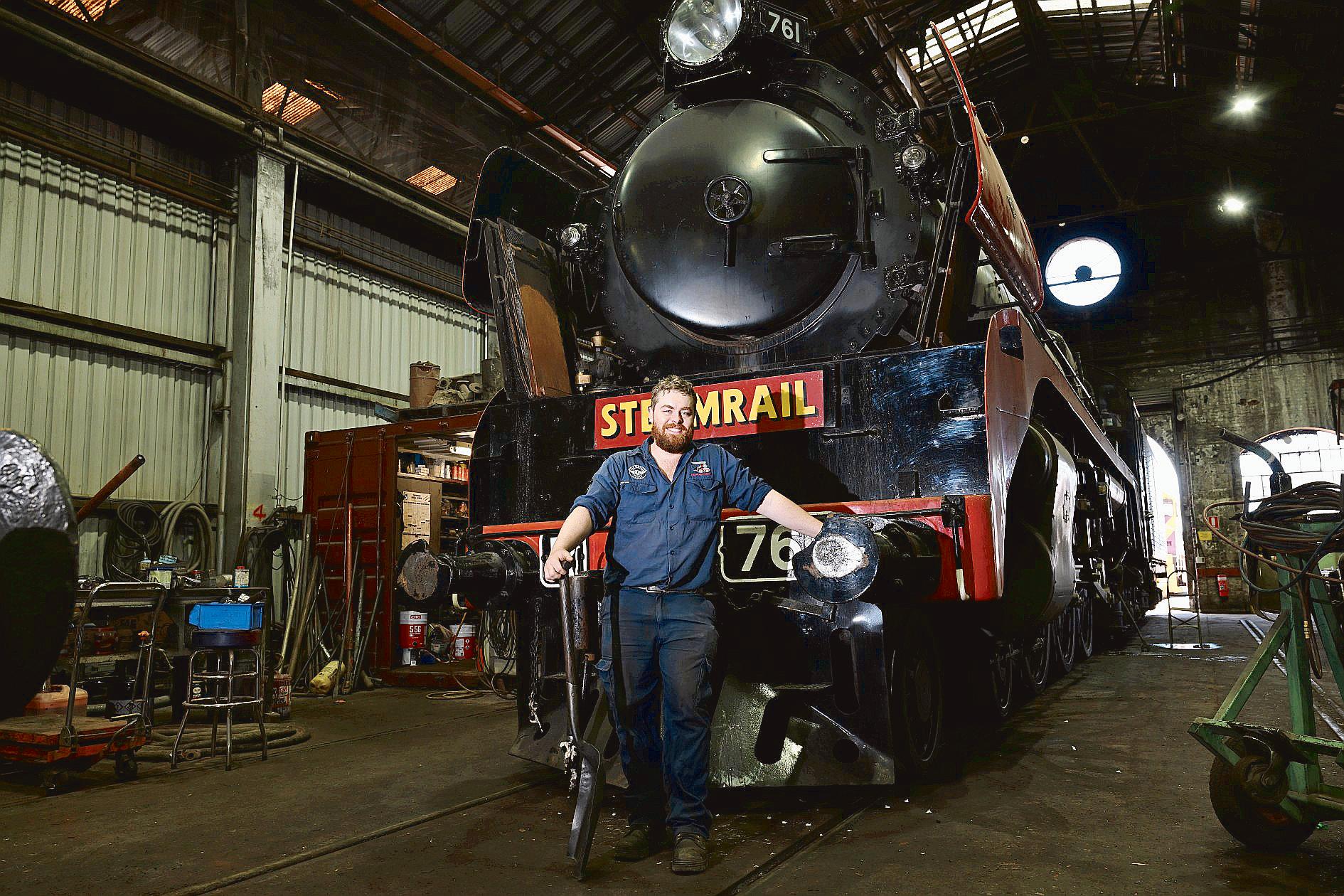 Noah Clancey from Steamrail’s operations department prepares to show off the