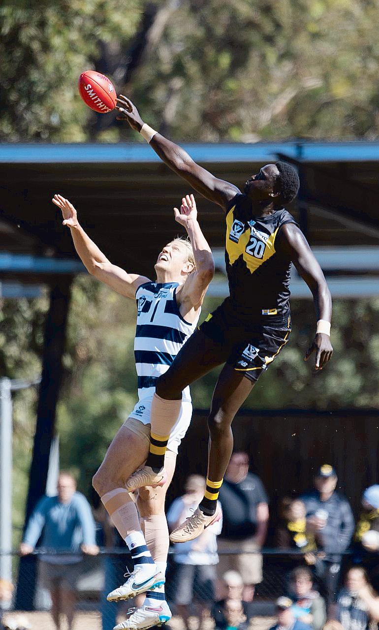 Lowther singled out big ruck Ajang Kuol Mun, who battled a double team of Cats’ premiership player Rhys Stanley and youngster Joe Pike, and midfielder Charlie Lazzaro,fortheireffortsinlimitingthesize of the defeat.