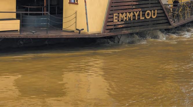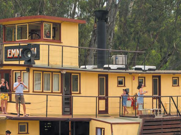 stalactites hanging down from the ceiling and also packed with gems from every country in the world. A cruise on the Murray River aboard the paddle steamer Rothbury was relaxing, informative and interesting going through the Lock.