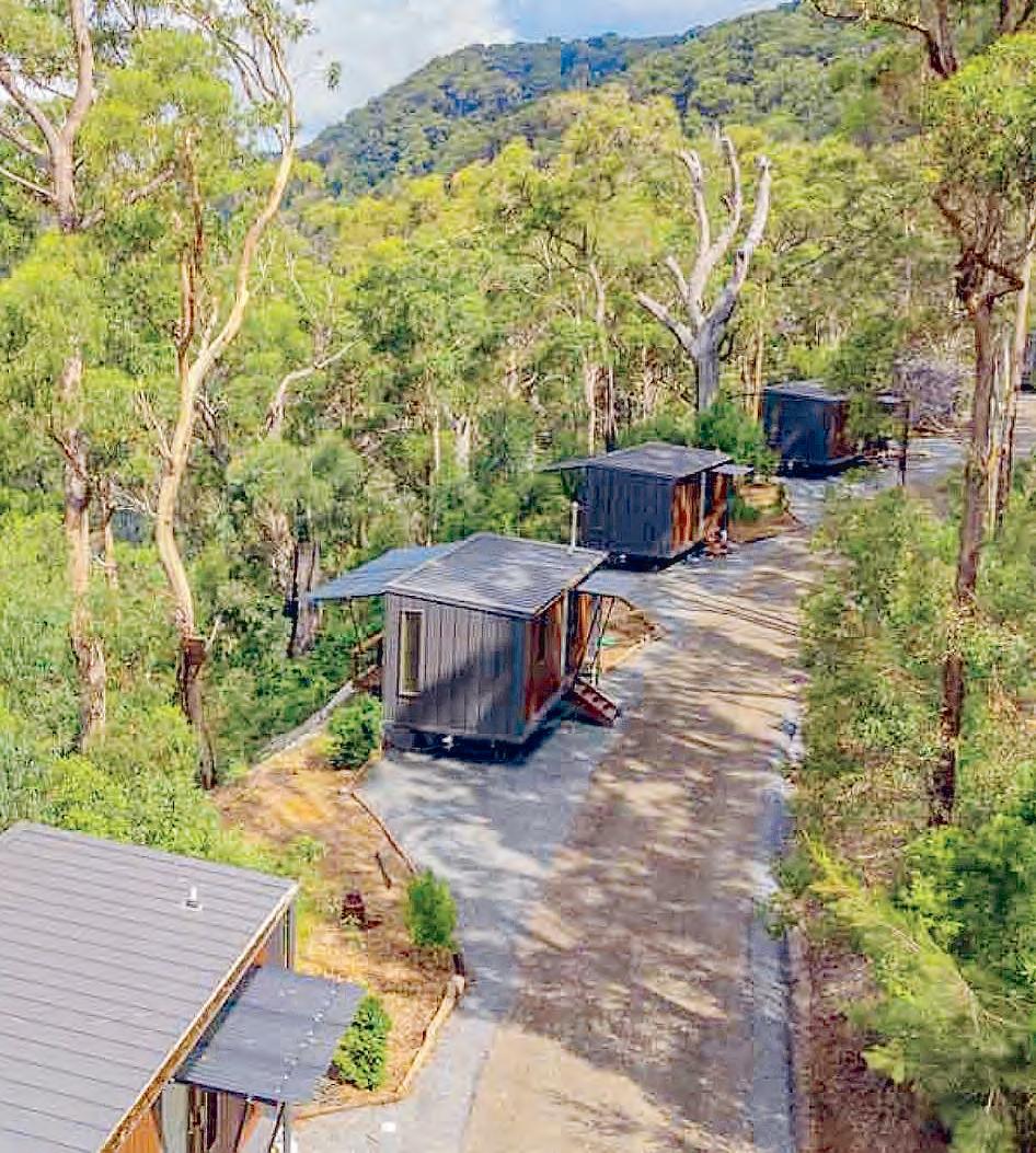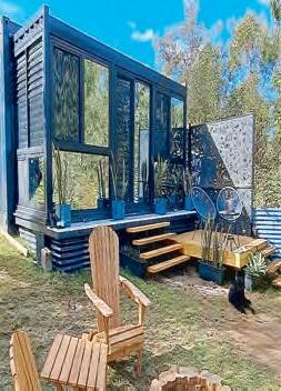 private bush garden; it’s powered by solar energy and nods to the environment. It’s the final in the Moogie trilogy, with bigger sisters, Moogie House and Moogie Glamp a good distance away, all at home on 19 acres of koala-protected habitat with an abundance of wildlife.