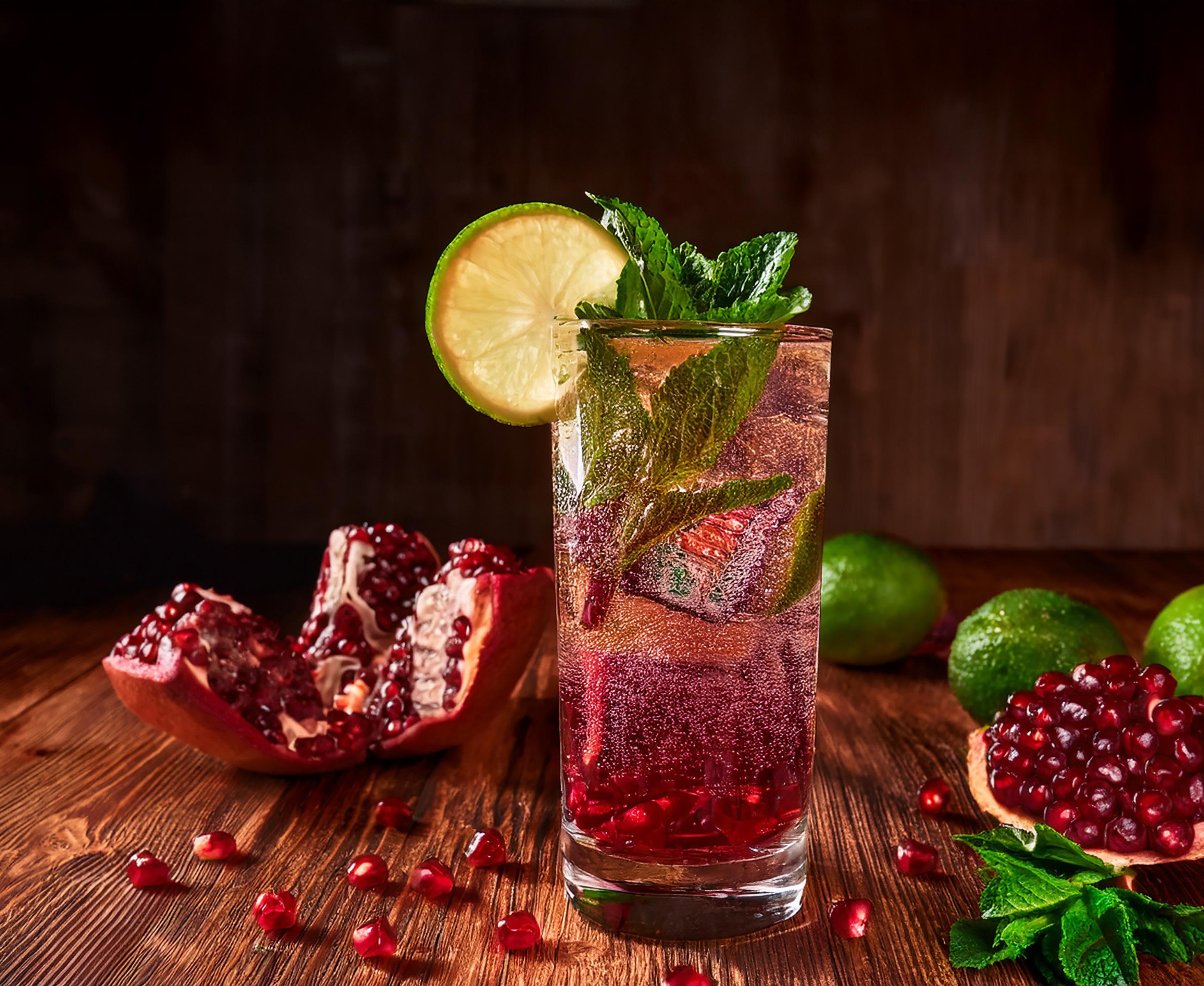 4) Garnish with extra mint, lime, or pomegranate arils.