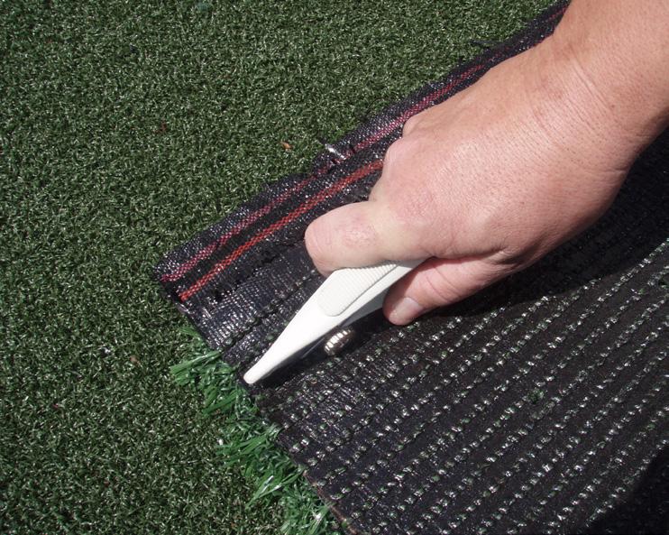 2. Lay out turf onto base and position where needed. Using razor knife, cut off salvage (the black & red part along the sides of the turf) - 3 stitches in from sides.