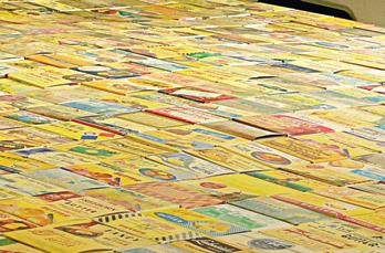 Ninety-six square feet of table-top real estate holds about two-thirds of Scott Krause’s butter box collection. The 8by 12- foot table space holds about 980 boxes. And yes, these are butter boxes, the small, branded cardboard containers which hold four sticks of buttery deliciousness.