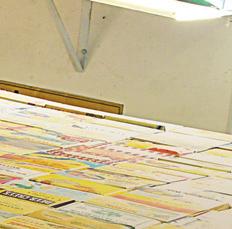 Butter boxes line an 8- by 12-foot table March 6 at the Krause family farm near