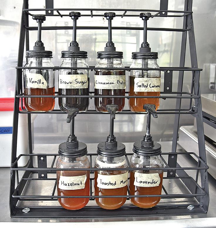 The syrups are made by Kenzie Luetmer from scratch using ingredients such as cinnamon, marshmallows, hazelnuts and lavender buds.