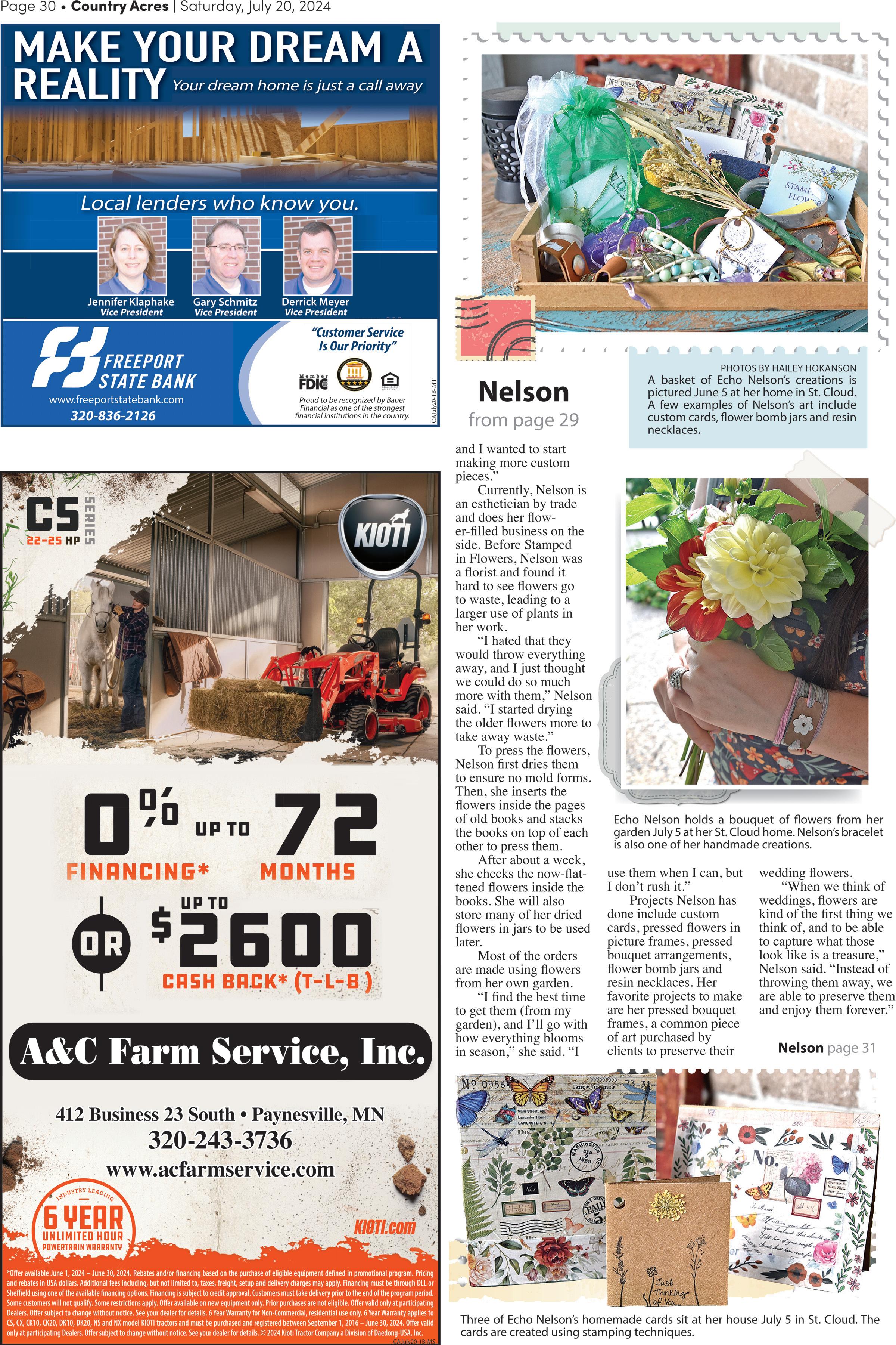 beaded jewelry, but I started to get kind of bored,” Nelson said. “I didn’t like using the teeny tiny things with my hands, Nelson page 30
