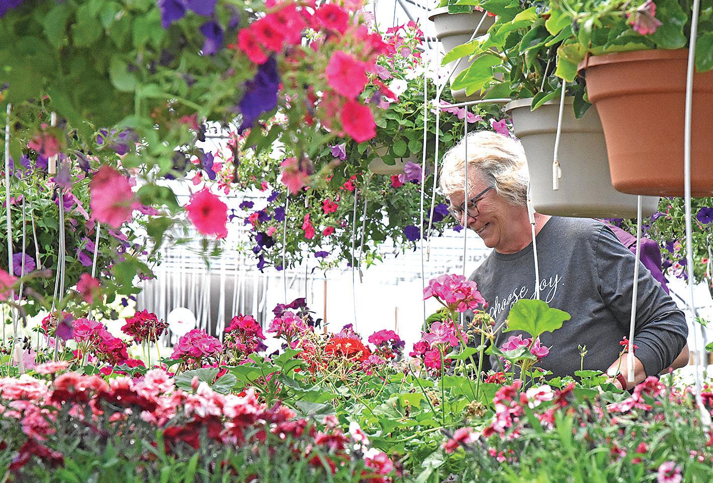 White and purple speckled flowers emerge from the leaves July 5 in St. Cloud. Nelson started incorporating flowers into her business in 2019.