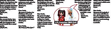 Dear Santa, My name is Quinn. I am 6 years old. I live in Royalton. For Christmas this year I would Lols, Rainbow high dolls, an American girl doll, a Barbie airplane, a Vikings jersey, my generation ballet doll and a Lol camper.