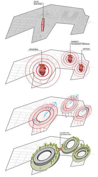 КОНЦЕПЦИЯ ТОЗИ ПРОЕКТ ИМА ЗА ЦЕЛ ДА СЪЗДАДЕ ПРОСТРАНСТВО, КЪДЕТО ВСЕКИ ДА МОЖЕ ДА ОТИДЕ НАВСЯКЪДЕ И ДА СЪЗДАДЕ ВРЪЗКА МЕЖДУ МИНАЛОТО И БЪДЕЩЕТО. ТОВА СЕ ПОСТИГА ЧРЕЗ КОМБИНАЦИЯ ОТ ФУТУРИСТИЧНА ВИЗИЯ И ЗАПАЗВАНЕ НА ИСТОРИЧЕСКИ ОСТАНКИ - В СЛУЧАЯ ПОЛУРАЗРУШЕНИЯ СИЛОЗ, КОЙТО ИМА ЦЕНТРАЛНО МЯСТО В КОМПОЗИЦИЯТА И ИГРАЕ ОСНОВНА РОЛЯ В ОФОРМЯНЕТО НА КОМПЛЕКСА.