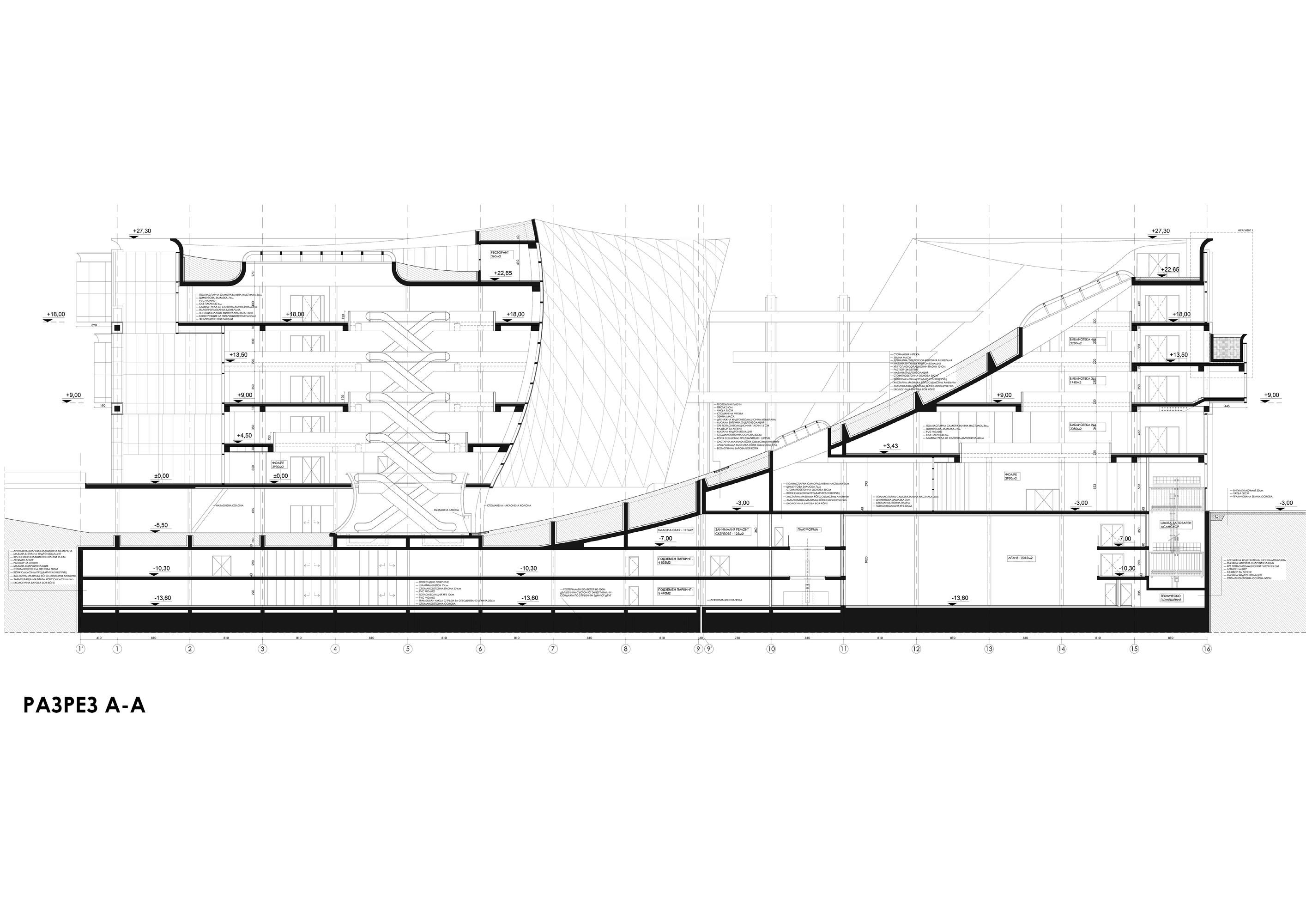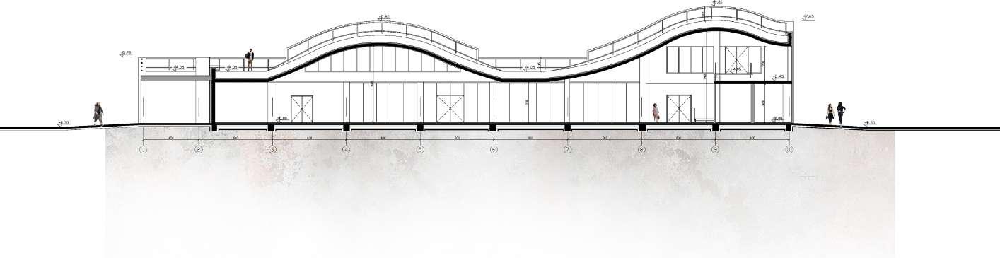 Създаване на атрактивна среда за посетителите. те могат да наблюдават за дейности в сградата през прозорците на покрива. покрива създава релеф, който зависи от различни височини на помещенията. директно от фоайето и от улицата може да се качи на покривното ниво, кхдето е организирано място за хранене, почивка и разходки.