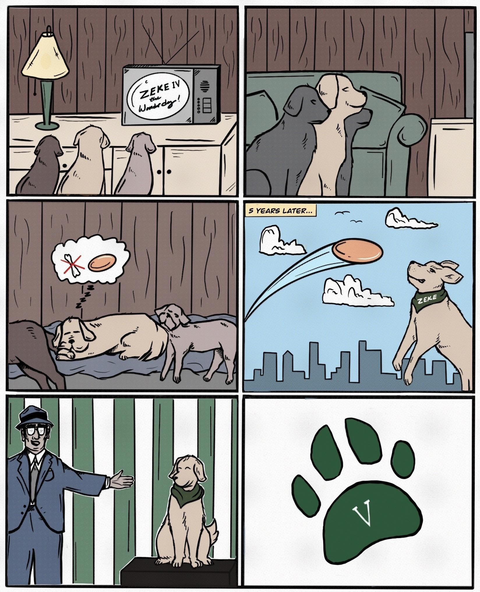 But after Zeke began to slow down in 1982 and Eisenberg’s second dog, Keze, was hit by a car and died, the halftime frisbee performances were put to rest in 1984. That is, until former athletic director Mark Hollis decided to search for a new Zeke.