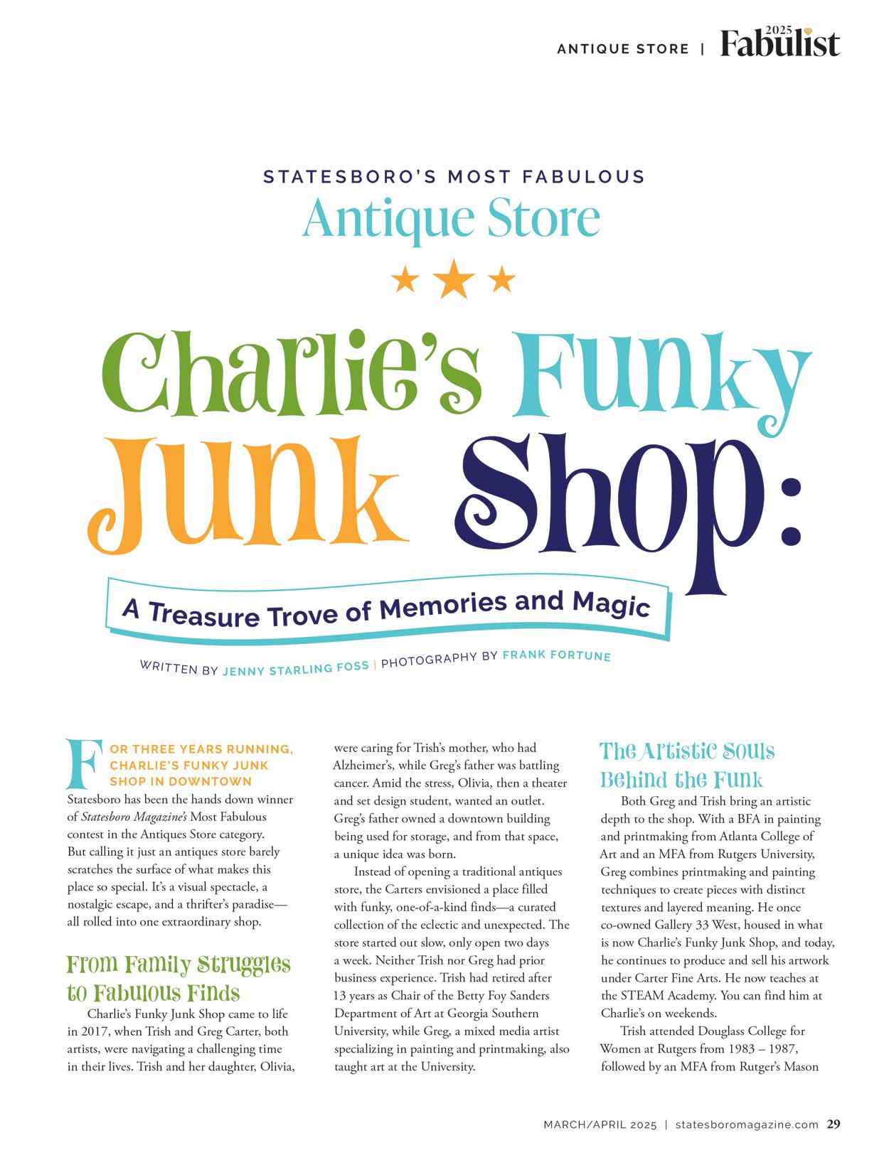 28 CHARLIE’S FUNKY JUNK SHOP A TREASURE TROVE OF MEMORIES & MAGIC