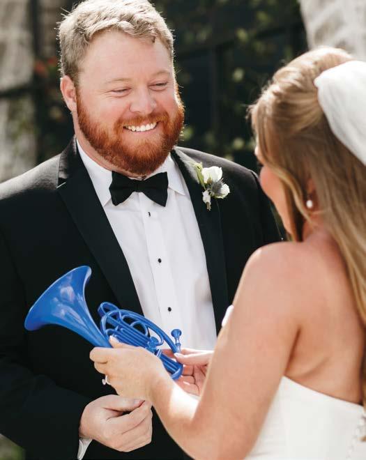 Some of the details that made the day feel so uniquely ours included the mini blue French horn Landon gave me during our “first look” photos – a sweet nod to our shared love of How I Met Your Mother. A brief rain shower at the start of the ceremony is now a lighthearted memory as it was followed by a beautiful rainbow, reminding us of God’s plans and promises.