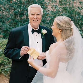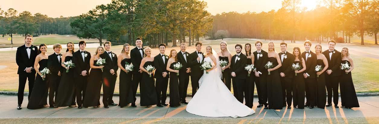 Jack and I met at The Masters in 2021, discovering that both of our dads had worked the tournament for 30+ years and we’d been attending on the same days each Masters Week for most of our lives. In 2024, after attending the tournament together for 3 years, Jack proposed on Wednesday of Masters Week on Hole 15. With golf being such a central theme of our relationship, we knew Forest Heights was the perfect venue for our reception. The backdrop of the course at sunset created a perfect ambience for our cocktail hour, and we were able to incorporate elements like our favorite flowers from the course into centerpieces, a golf themed Groom’s cake for guests to enjoy, and even our passes from the day we got engaged into our flatlay photos.