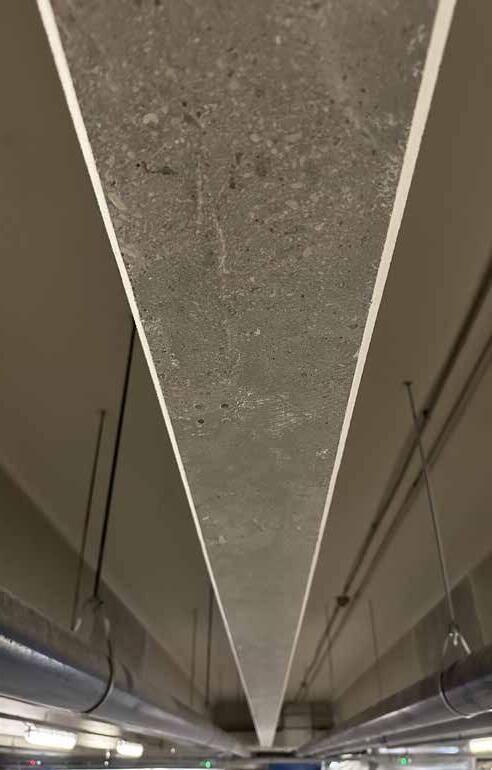 muziejus Berlyne), oro uostuose, prekybos ir verslo centruose, kur yra dideli lankytojų srautai. „Lietuvoje, naudodamas šią medžiagą, „Lapukas ir pieštukas“ taip pat įgyvendino ne vieną viešosios paskirties projektą: „Radijo namai“ (M-1, „Lietus“ ir kt. radijo stočių namai), interjerą kūrė „Plazma“; ISM universitetas (buvęs Vilniaus pašto pastatas), interjero autoriai A2SM; Vilniaus televizijos bokšto rekonstrukcija, „Taurės“ interjero rekonstrukcija; Vilniaus universiteto Medicinos fakultetas, interjeras „Cloud architektai“, – vardina MB „Lapukas ir pieštukas“ įmonės vadovas Rokas Kazlauskas, kuriam šios medžiagos gamybos technologija puikiai žinoma, mat 2020 m. VILNIUS TECH universitete apsigynė magistro laipsnį (Cheminio poveikio mozaikinio betono paviršiui tyrimas).