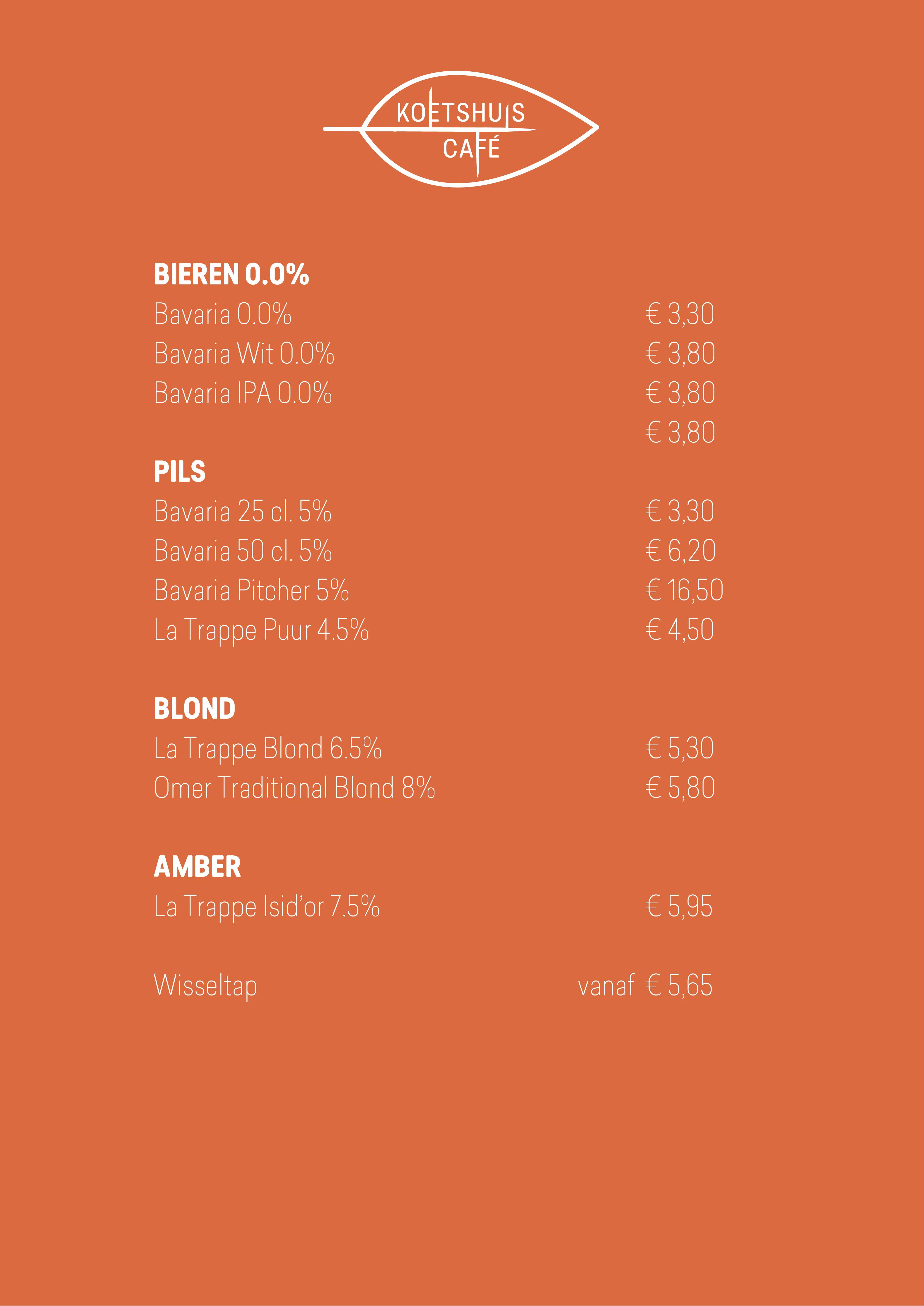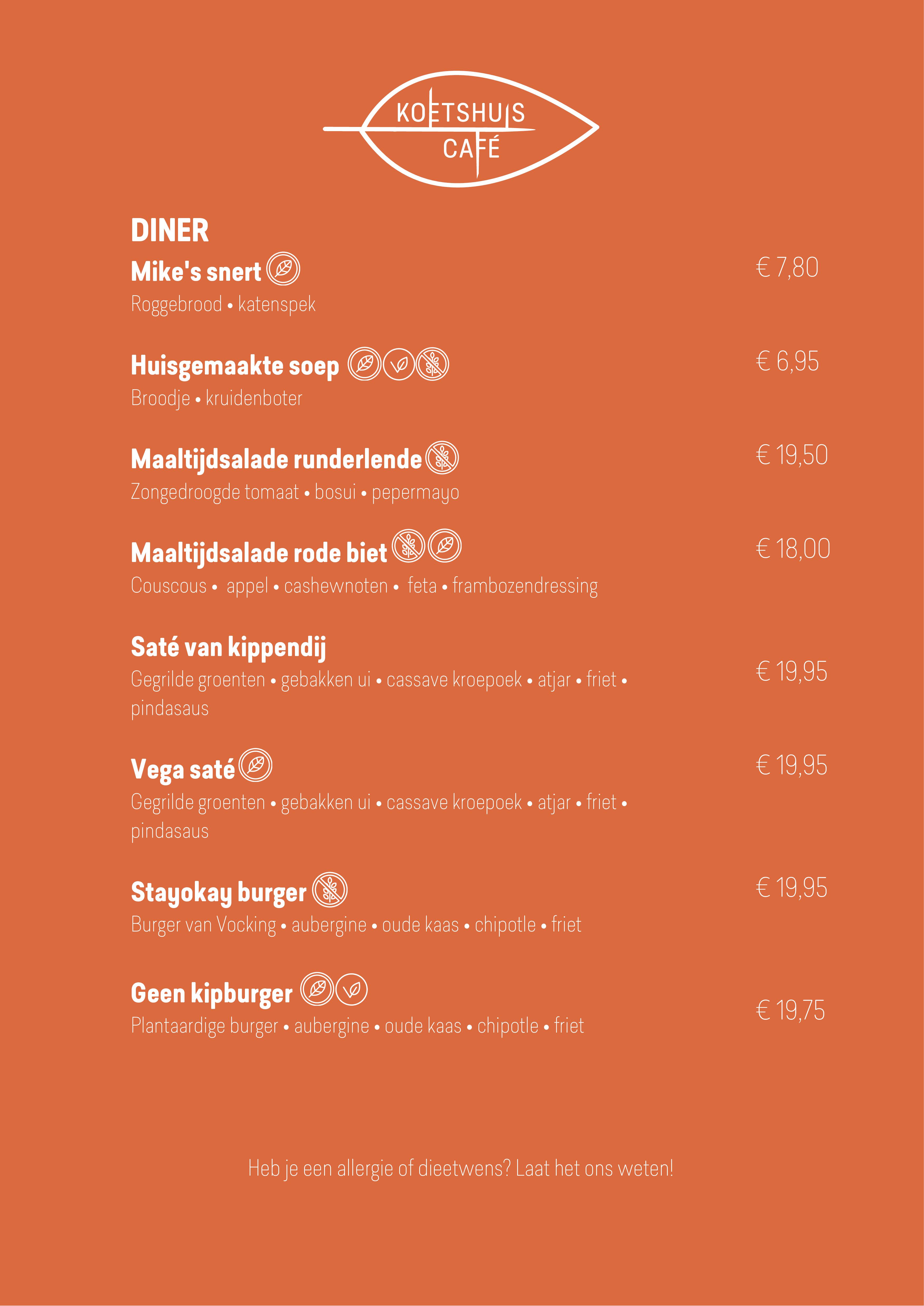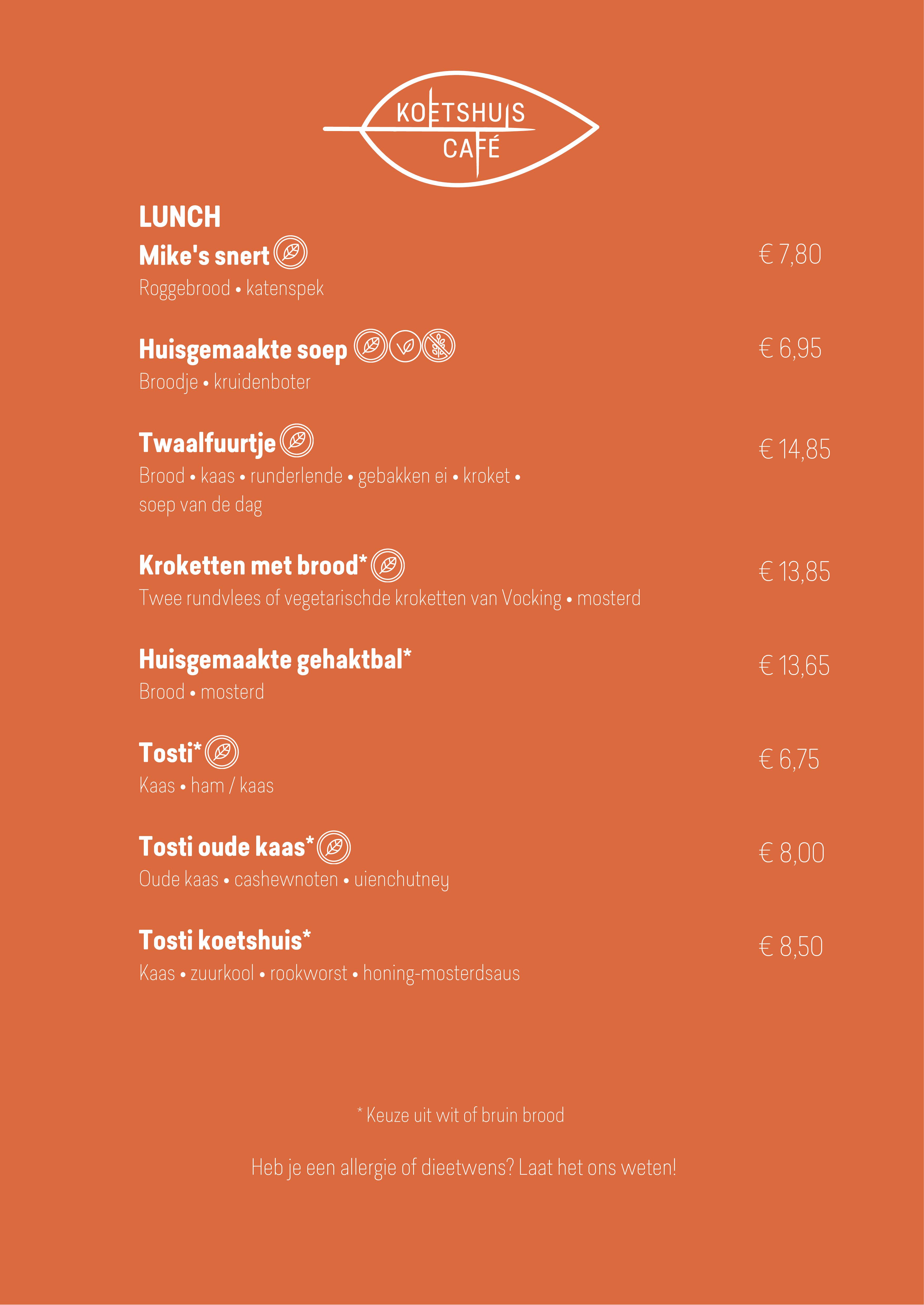 Koetshuis Café Bunnik menukaart