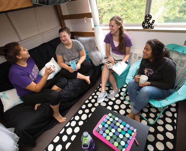 Residence halls with single, double and triple rooms; themed housing communities; suites; or apartments—your choice of housing can evolve as you do, connecting you with new and old friends in an environment of safety and comfort. Convenient, on-campus amenities include access to computer labs, the Health and Wellness Clinic, and learning centers for academic support.